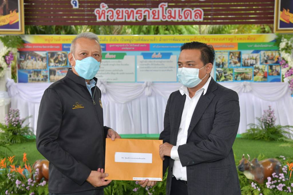 นายกิตติศักดิ์ นาคกุล ผู้ใหญ่บ้าน บ้านห้วยทราย กล่าวว่า บ้านห้วยทรายหมู่ที่ 3 ตำบลทรัพย์ทวี เป็นหมู่บ้านเศรษฐกิจพอเพียงตามแนวทางพระราชดำริในหลวงรัชกาลที่ 9 ตั้งแต่ปี 2553 และตามแนวพระบรมราโชบายในหลวงรัชกาลที่ 10 ในปัจจุบันเน้นการมีส่วนร่วมของชุมชนทั้งการผลิตสินค้าชุมชน เช่น ปลาเม็งรมควัน ปลาเม็งแปรรูป เชื่อมโยงการท่องเที่ยวชุมชน สร้างโอกาสและรายได้ที่มั่นคงและมีการวางยุทธศาสตร์ หมู่บ้าน 20 ปีเป็นต้น และที่สำคัญบ้านห้วยทรายเป็นที่ตั้งของทุ่งปากขอพื้นที่กว่า 7,700 ไร่ ซึ่งปัจจุบันพื้นที่บางส่วนถูกปรับ ให้เป็นแก้มลิงและอ่างเก็บน้ำขนาดใหญ่ด้วยงบประมาณกว่า 350 ล้านบาท เกิดประโยชน์หลายด้าน เช่น แก้ปัญหาน้ำท่วม เป็นแหล่งเพาะพันธ์สัตว์น้ำ เป็นแหล่งอาหารสัตว์ ที่อพยพสัตว์เมื่อเกิดน้ำท่วม แต่ด้วยสภาพพื้นที่ที่สวยงามมีเส้นทางสัญจรที่สะดวกอยู่ใกล้สนามบินเหมาะแก่การพัฒนาเป็นแหล่งท่องเที่ยวในอนาคต จึงเสนอขอให้มีการสร้างถนนเชื่อมโยงกับพื้นที่แก้มลิงทุ่งปากขอ