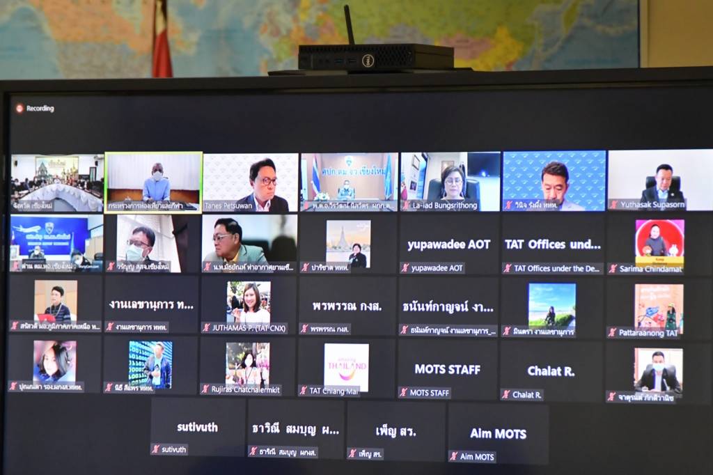 14 กันยายน 2564 เวลา 19:11รมว.พิพัฒน์ รัชกิจประการ ประชุมหารือติดตามความคืบหน้าการเปิดรับนักท่องเที่ยวชาวต่างชาติ CHARMING Chiang Maiวันที่ 14 กันยายน 2564 ที่ห้องประชุมรัฐมนตรีฯ นายพิพัฒน์ รัชกิจประการ รัฐมนตรีว่าการกระทรวงการท่องเที่ยวและกีฬา เป็นประธานการประชุมหารือติดตามความคืบหน้าการเปิดรับนักท่องเที่ยวชาวต่างชาติ CHARMING Chiang Mai ผ่านโปรแกรม Zoom Meeting โดยมี นายเขมพล อุ้ยตยะกุล เลขานุการรัฐมนตรีว่าการกระทรวงการท่องเที่ยวและกีฬา นายโชติ ตราชู ปลัดกระทรวงการท่องเที่ยวและกีฬา นายยุทธศักดิ์ สุภสร ผู้ว่าการการท่องเที่ยวแห่งประเทศไทย พร้อมด้วย รองผู้ว่าราชการจังหวัดเชียงใหม่ และหน่วยงานที่เกี่ยวข้องฯ เข้าร่วมประชุม แชร์บทความนี้:
