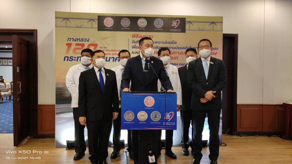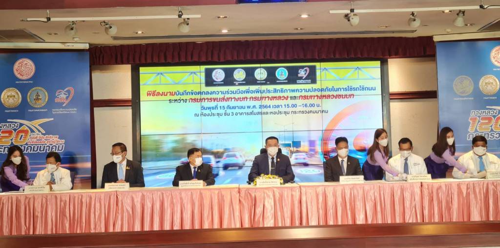 วันนี้ (15 กันยายน 2564) เวลา 15.00 น. ณ ห้องประชุม ชั้น 3 อาคารสโมสรและหอประชุม กระทรวงคมนาคม นายศักดิ์สยาม ชิดชอบ รัฐมนตรีว่าการกระทรวงคมนาคม ให้เกียรติเป็นประธานสักขีพยาน ในพิธีลงนามบันทึกข้อตกลงความร่วมมือเพื่อเพิ่มประสิทธิภาพความปลอดภัยในการใช้รถใช้ถนนระหว่างกรมการขนส่งทางบก โดยนายจิรุตม์ วิศาลจิตร อธิบดีกรมการขนส่งทางบก กรมทางหลวง โดยนายสราวุธ ทรงศิวิไล อธิบดีกรมทางหลวง และกรมทางหลวงชนบท โดย นายไกวัลย์ โรจนานุกูล รองอธิบดีกรมทางหลวงชนบท รักษาราชการแทนอธิบดีกรมทางหลวงชนบท โดยมีผู้บริหารและเจ้าหน้าที่กระทรวงคมนาคม และผู้สื่อข่าว ร่วมเป็นสักขีพยาน