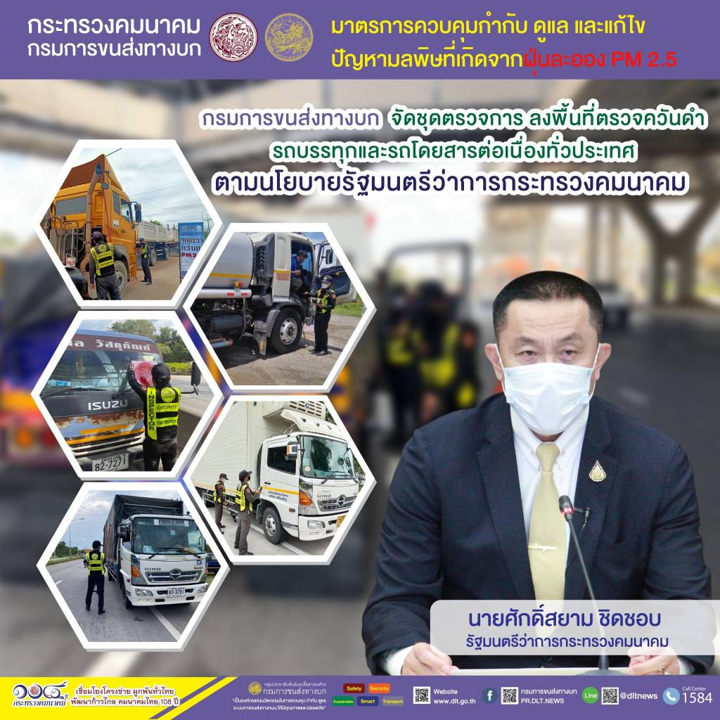 กรมการขนส่งทางบก ตรวจควันดำรถบรรทุกและรถโดยสารต่อเนื่องทั่วประเทศ มุ่งป้องกันและแก้ไขปัญหา PM2.5