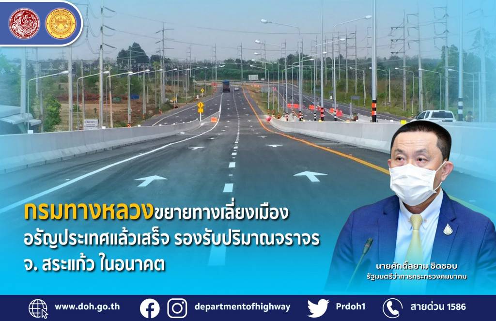 โครงการทางเลี่ยงเมืองอรัญประเทศเป็นการพัฒนาโครงข่ายทางหลวงและรองรับการจราจรด้านการขนส่งโลจิสติกส์และนักท่องเที่ยวที่มีแนวโน้มการขยายตัวเพิ่มสูงขึ้นอย่างต่อเนื่องในอนาคต สามารถสร้างโอกาสใน การกระจายความเจริญทางด้านเศรษฐกิจในระดับท้องถิ่นและการค้าการลงทุนข้ามพรมแดนในระดับประเทศ เพิ่มความสามารถในการแข่งขันของอาเซียนสู่ตลาดโลก และเพิ่มประสิทธิภาพการคมนาคมขนส่งด้านโลจิสติกส์บนโครงข่ายทางหลวงที่สำคัญของประเทศและประเทศเพื่อนบ้านให้ได้รับความสะดวก รวดเร็วและมีความปลอดภัยในการใช้งาน ช่วยส่งเสริมการพัฒนาด้านเศรษฐกิจในพื้นที่ การเติบโตทางการค้า การลงทุนด้านการเกษตร ด้านการท่องเที่ยว การบริการ การอุตสาหกรรม การคมนาคมขนส่ง กรมทางหลวงขอความร่วมมือผู้ใช้ทาง “ชีวิตวิถีใหม่ ขับขี่อย่างปลอดภัย ไร้อุบัติเหตุ” ขับขี่ด้วยความระมัดระวังเพื่อความปลอดภัยของตัวท่านและผู้ร่วมทาง ประชาชนสามารถสอบถามเส้นทางการเดินทางได้ที่ สายด่วนกรมทางหลวง โทร 1586 (โทรฟรีทุกเครือข่ายตลอด 24 ชั่วโมง)