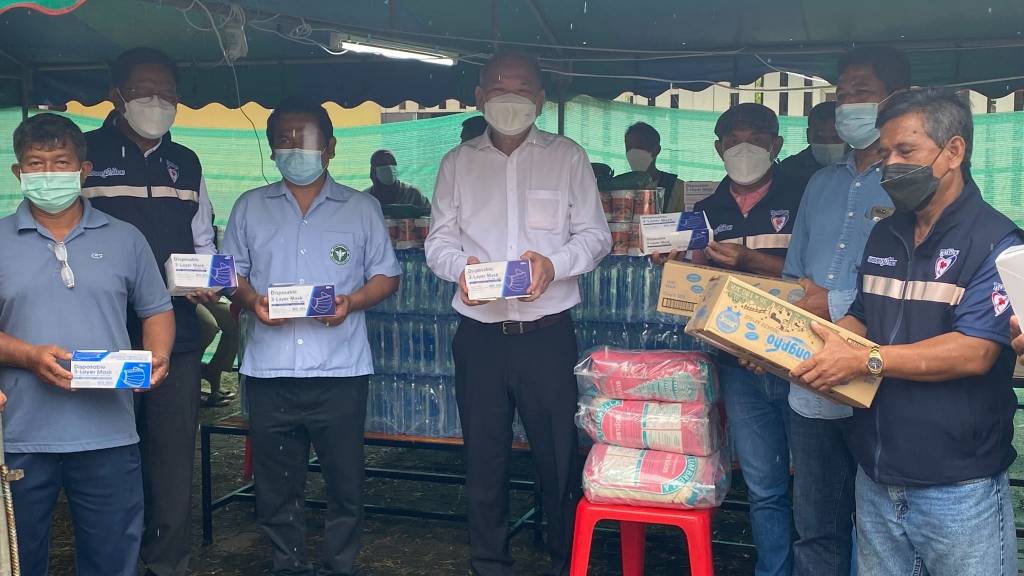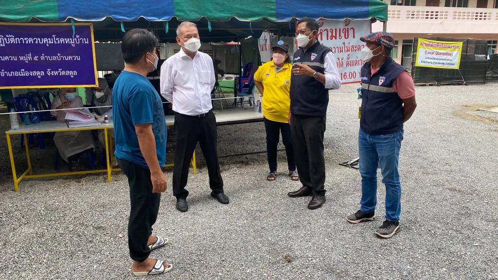 ต่อจากนั้น ได้มอบหน้ากากอนามัย จำนวน 24 กล่อง และฟ้าทะลายโจร 100 กระปุกให้แก่ผู้ที่กักตัว โควิด-19 (LQ) ณ มัสยิดบ้านควน อ.เมือง จว.สตูล