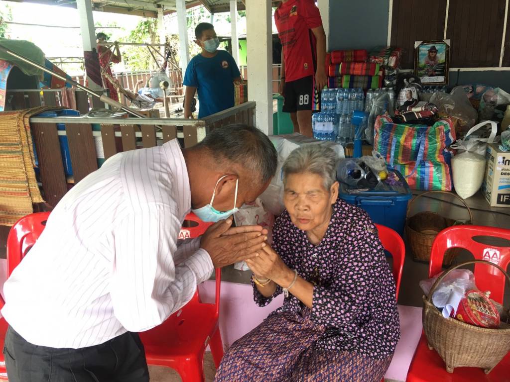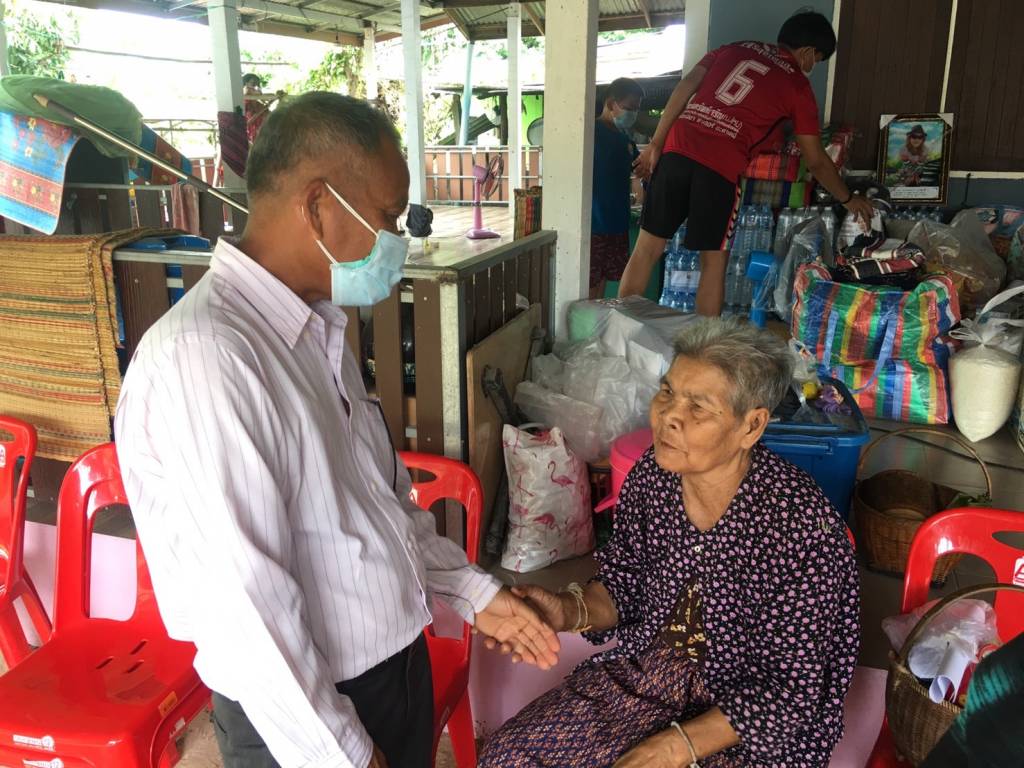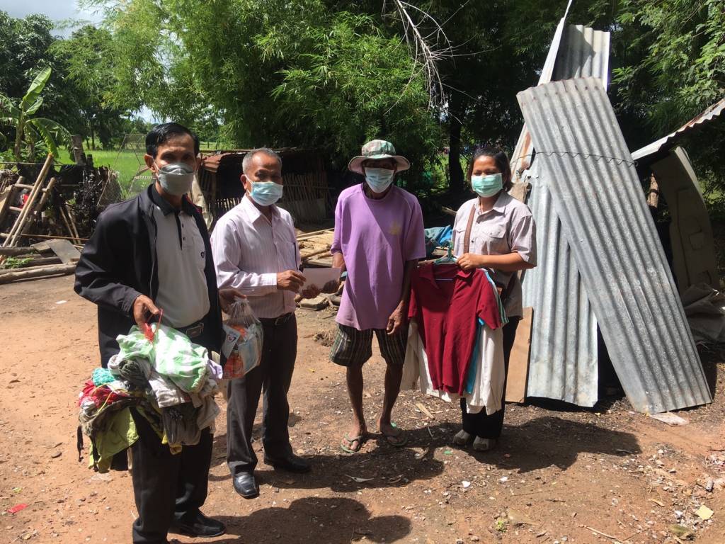 หลังจากนั้น ได้ลงพื้นที่บ้านโนนสะอาด ต.ท่าสองคอน อ.เมือง มหาสารคาม มอบถุงยังชีพ ให้นายทองจันทร์ ขาลหยู เนื่องจากได้รับผลกระทบจากวาตภัย ทำให้บ้านเรือนเสียหาย