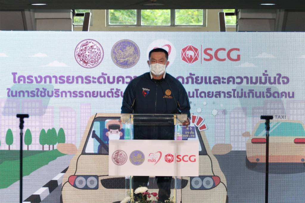 รัฐมนตรีว่าการกระทรวงคมนาคม กล่าวว่า ท่ามกลางสถานการณ์การแพร่ระบาด ทุกภาคธุรกิจต้องปรับตัวตามมาตราการสาธารณสุขเพื่อป่องกันการแพร่กระจายของเชื้อโรค ในเขตกรุงเทพมหานคร โดยเฉพาะอย่างยิ่งรถแท็กซี่ซึ่งเป็นการขนส่งสาธารณะที่ผู้ขับรถและผู้โดยสารอยู่ในพื้นที่ใกล้กัน ส่งกระทบต่อผู้ประกอบการ เจ้าของรถ และผู้ขับรถแท็กซี่ เนื่องจากประชาชนขาดความมั่นใจจากประเด็นปัญหาต่างๆ เหล่านี้ จึงต้องคิดนวัตกรรมมาช่วยเหลือเยียวยาและปรับปรุงระบบขนส่งสาธารณะในยุค new normal รัฐบาลภายใต้การบริหารงานของ พลเอกประยุทธ์ จันทร์โอชา นายกรัฐมนตรี ไม่ได้นิ่งนอนใจ จึงได้มอบหมายให้กระทรวงคมนาคมพิจารณามาตรการป้องกันควบคุมการแพร่ระบาดของโรคโควิด-19 เพื่อช่วยเหลือเยียวยาให้ผู้ขับรถแท็กซี่สามารถประกอบอาชีพได้ตามปกติ โดยมีกรมการขนส่งทางบกสนองรับนโยบายดังกล่าวและดำเนินการโครงการยกระดับความปลอดภัยและความมั่นใจในการใช้บริการรถยนต์รับจ้างบรรทุกคนโดยสารไม่เกินเจ็ดคน โดยทำการติดตั้งฉากกั้นระหว่างผู้ขับรถและผู้โดยสาร เพื่อป้องกันละอองฝอยจากการพูดคุย ไอ จาม ช่วยลดความเสี่ยงในการแพร่ระบาดของโรคโควิด 19 และยังช่วยเสริมสร้างความเชื่อมั่นและความมั่นใจในการใช้บริการรถสาธารณะอีกด้วย ทั้งนี้ ในระยะแรกจะนำร่องติดตั้งฉากกั้นในรถแท็กซี่ที่เข้าร่วมโครงการ จำนวน 3,000 คัน ประกอบด้วย รถแท็กซี่นิติบุคคลจากสมาคม สหกรณ์ต่างๆ และรถแท็กซี่บุคคลธรรมดา เชื่อว่าการติดตั้งฉากกั้นตามโครงการดังกล่าว นอกจากลดความเสี่ยงในการแพร่ระบาดของโรคโควิด-19 ระหว่างผู้ขับรถและคนโดยสารภายในรถแท็กซี่แล้ว ยังช่วยให้เกิดความปลอดภัยในชีวิต ร่างกาย หรือทรัพย์สินของผู้ขับรถหรือคนโดยสารรถแท็กซี่ เสริมสร้างความเชื่อมั่นและความมั่นใจในการใช้บริการรถสาธารณะ ลดการใช้รถส่วนตัว ผู้ขับรถแท็กซี่ก็สามารถประกอบอาชีพได้ภายใต้มาตรการ Social distancing แบบ New normal รองรับการเปิดประเทศ ส่งเสริมเศรษฐกิจภาพรวมต่อไป