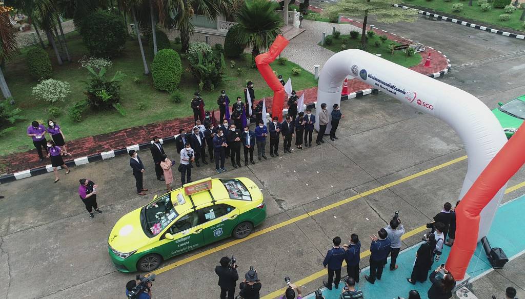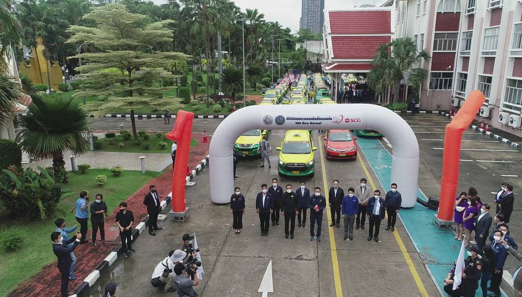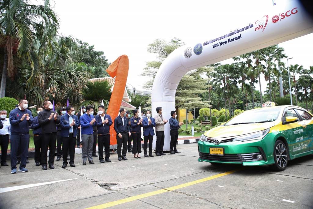 วันนี้ (23 กันยายน 2564) เวลา 11.00 ณ กรมการขนส่งทางบก นายศักดิ์สยาม ชิดชอบ รัฐมนตรีว่าการกระทรวงคมนาคม เป็นประธานในพิธีเปิดกิจกรรม “ปล่อยขบวนรถแท็กซี่ติดฉากกั้นแบบ New Normal” ภายใต้โครงการยกระดับความปลอดภัยและความมั่นใจในการใช้บริการรถยนต์รับจ้างบรรทุกคนโดยสารไม่เกินเจ็ดคน โดยมีนายจิรุตม์ วิศาลจิตร อธิบดีกรมการขนส่งทางบก นายธนวงษ์ อารีรัชชกุล กรรมการผู้จัดการใหญ่ เอสซีจี เคมิคอลส์ ผู้บริหารกระทรวงฯ ผู้บริหารกรมการขนส่งทางบก ผู้บริหาร เอสซีจี เคมิคอลส์ และผู้ขับรถแท็กซี่ ร่วมในพิธีปล่อยขบวนรถแท็กซี่ ที่ติดตั้งฉากกั้นอะคริลิกใสภายในห้องโดยสาร พร้อมออกให้บริการประชาชนในอัตราค่าโดยสารปกติ ซึ่งเป็นหนึ่งในมาตรการช่วยเหลือผู้ประกอบอาชีพขับรถแท็กซี่ และเป็นการสร้างความเชื่อมั่นในการเดินทางด้วยรถแท็กซี่ให้แก่ประชาชนในสถานการณ์การแพร่ระบาดของโรคติดเชื้อไวรัสโคโรนา 2019