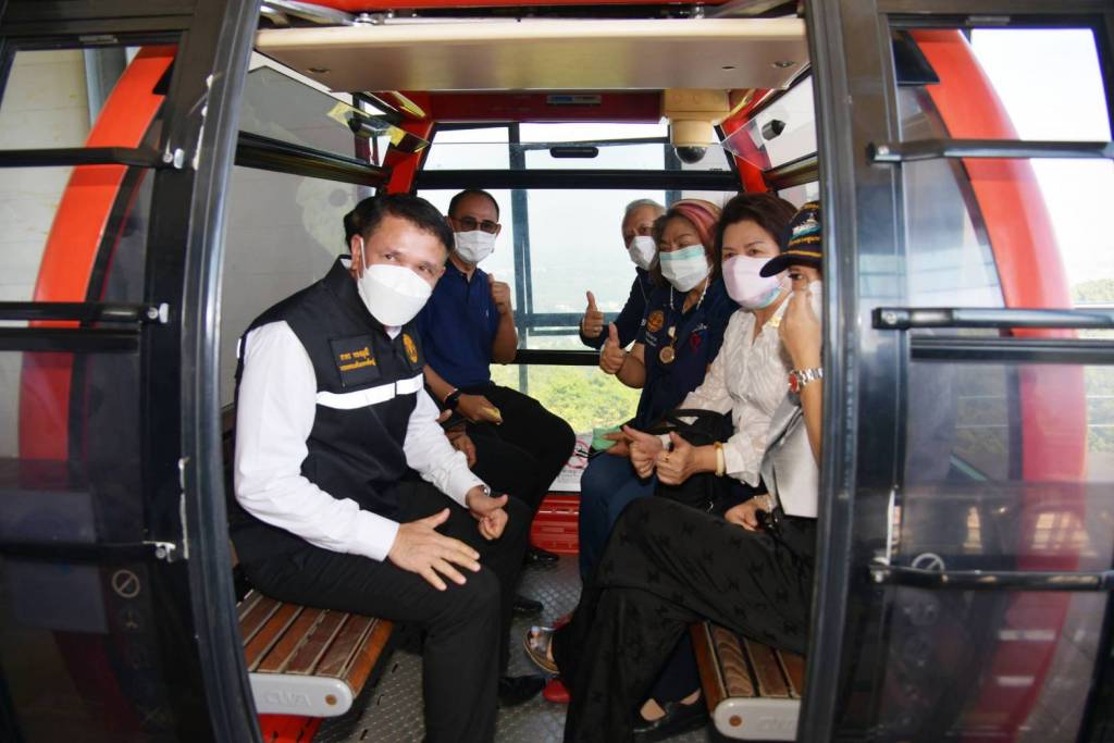 จากนั้นเยี่ยมชมกระเช้าลอยฟ้า (Hatyai Cable Car) สร้างขึ้นสมัย นายไพร พัฒโน ดำรงตำแหน่งนายกเทศมนตรีนครหาดใหญ่ ใช้งบประมาณก่อสร้าง 170,600,000 บาท เปิดให้นักท่องเที่ยวใช้บริการเมื่อ 5 ธันวาคม พ.ศ.2554 เป็นกระเช้าลอยฟ้าแห่งแรกของประเทศไทย เป็นเส้นทางสักการะสิ่งศักดิ์สิทธิ์จากพระพุทธมงคลมหาราช ไปยังท้าวมหาพรหม ตัวกระเช้ามี 2 คัน ระยะทาง 535 เมตร ใช้เวลาเดินทาง 2.30 นาที ต่อ 1 รอบ โดยกระเช้าสามารถบรรทุกผู้โดยสาร 8 คน/ครั้ง รองรับน้ำหนักได้ 640 กิโลกรัม ภายใต้มาตรฐานความปลอดภัยจากยุโรป