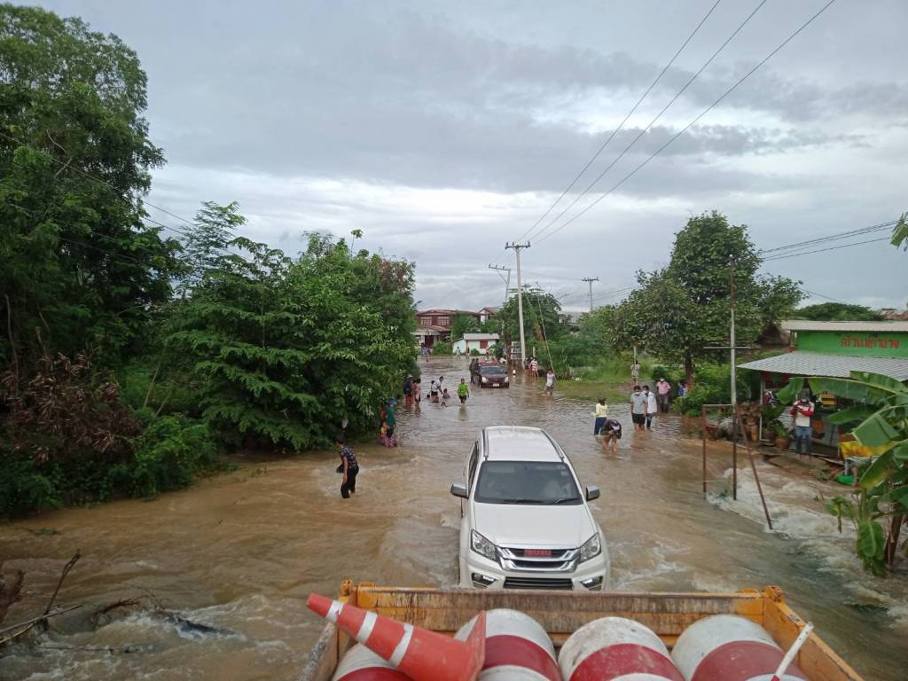 - ถนนทางหลวงชนบทสาย ขก.3037 แยก ทล.229 – บ้านสำราญ อ.โคกโพธิ์ไชย จ.ขอนแก่น มีปริมาณน้ำท่วม 20-35 ซม.