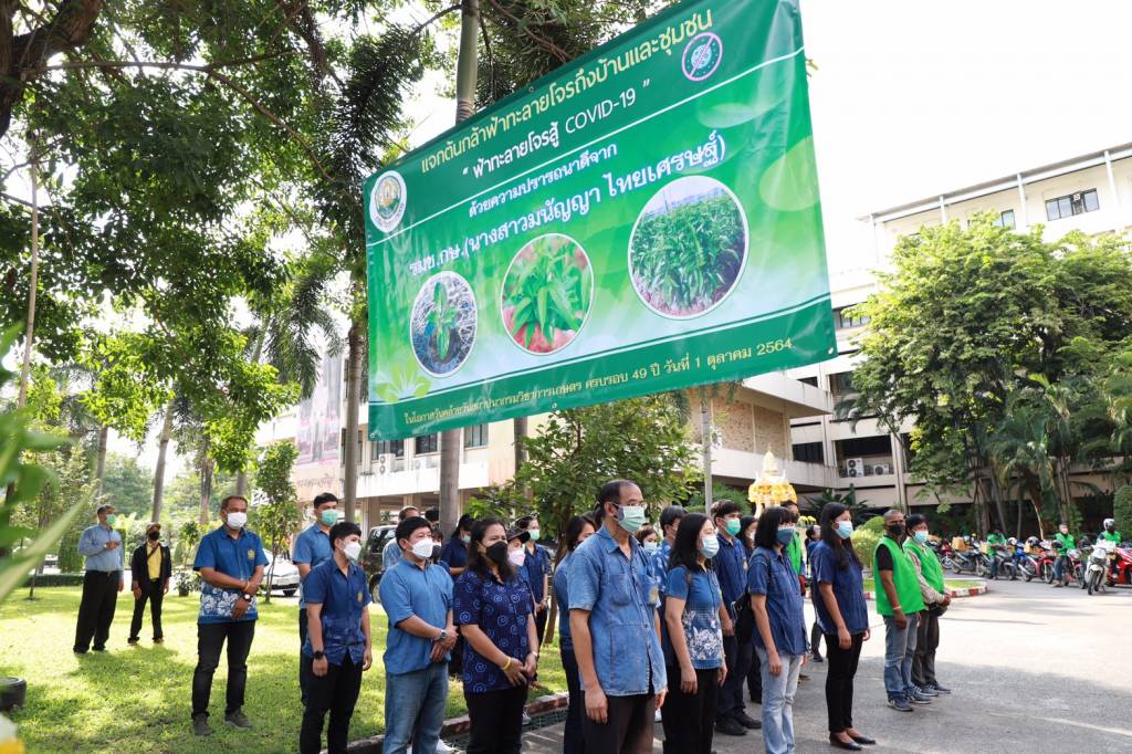 โดยในปี 2564 กระทรวงเกษตรและสหกรณ์ ได้มอบหมายกรมวิชาการเกษตร เดินหน้าขับเคลื่อนการปลูกต้นฟ้าทะลายโจร เพื่อผลิตเมล็ดพันธุ์และต้นกล้าฟ้าทะลายโจร สนับสนุนให้สถาบันเกษตรกรในสหกรณ์ต่างๆ ทั่วประเทศของกรมส่งเสริมสหกรณ์ จัดทำโครงการส่งเสริมการปลูกฟ้าทะลายโจรเพื่อป้อนเป็นวัตถุดิบให้กับกระทรวงสาธารณสุข กรมการแพทย์แผนไทย พัฒนาและผลิตเป็นยาต้านไวรัสโควิด-19 โดยกรมวิชาการเกษตรผลิตเมล็ดพันธุ์และต้นกล้าฟ้าทะลายโจรทั้งพันธุ์พื้นเมืองที่ปลูกเป็นการค้าทั่วไป และสายพันธุ์ใหม่ที่กรมวิชาการเกษตรได้มีการพัฒนาปรับปรุงพันธุ์เป็นพันธุ์รับรองของกรมวิชาการเกษตร โดยมีเป้าหมายส่งมอบต้นกล้าฟ้าทะลายโจร จำนวน 770,000 ตันให้สหกรณ์จำนวน 21 สหกรณ์ รองรับการปลูกฟ้าทะลายโจรในพื้นที่ 98 ไร่ในปี 2564 สำหรับกิจกรรมในครั้งนี้กรมวิชาการเกษตรได้จัดเตรียมต้นฟ้าทะลายโจรส่งถึงผู้ใช้ประโยชน์ ด้วยคาราวานไรเดอร์ 49 คัน ส่งต้นฟ้าทะลายโจรถึงหน้าบ้าน และโดยรถยนต์ส่งมอบต้นฟ้าทะลายโจรให้ชุมชน 3 ชุมชน ได้แก่ 1) ชุมชนบางบัว เขตหลักสี่ 2) ชุมชนปู่เจ้าสมิงพรายและสะพานปูน เขตดอนเมือง และ 3) ชุมชนวัดดอนเมืองด้านเหนือ เขตดอนเมือง รวมจำนวนทั้งสิ้น 4,949 ต้น ซึ่งการขับเคลื่อนดังกล่าว จะเป็นการส่งเสริมการขยายตัวของวงการพืชสมุนไพรไทยที่มีคุณค่าเพื่อการพัฒนาเพิ่มมูลค่าพืชสมุนไพรไทยสู่การใช้ประโยชน์ที่หลากหลาย