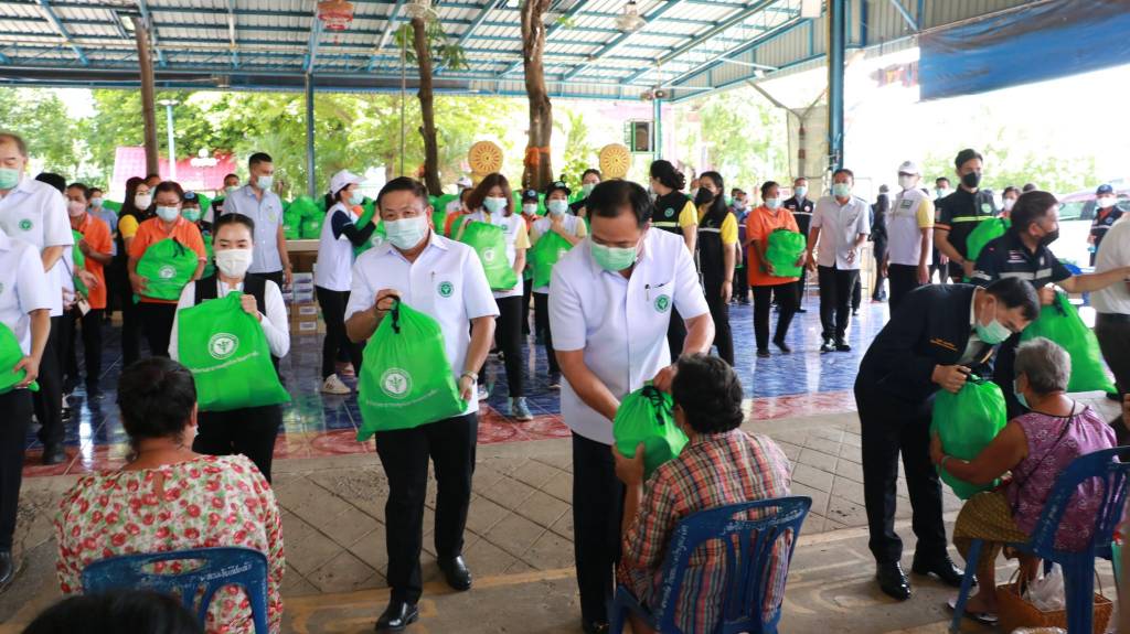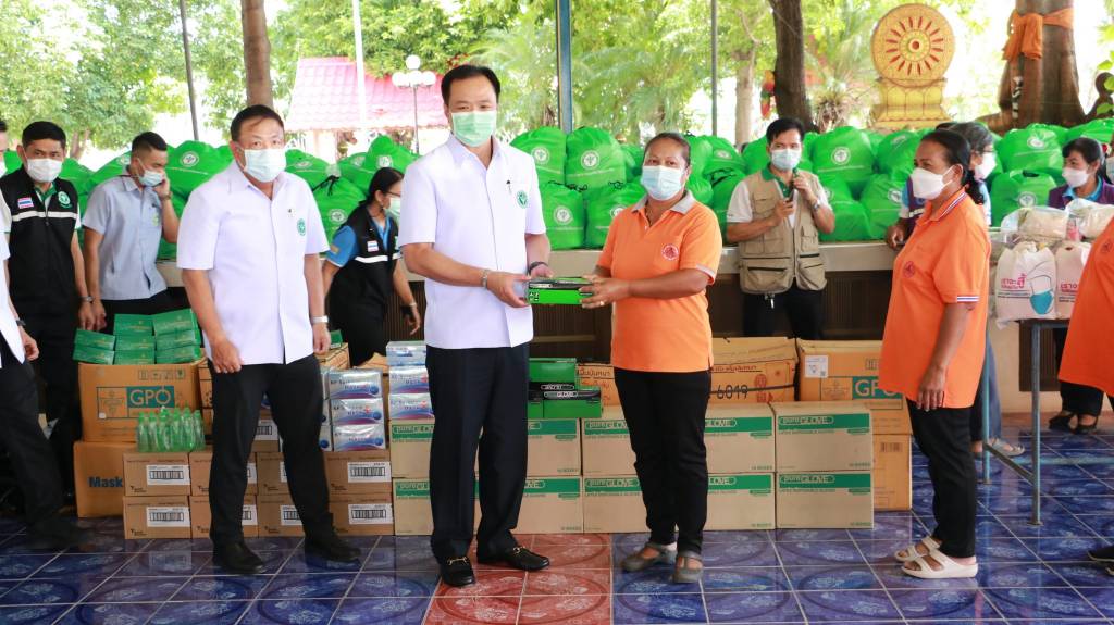 จากนั้น นายอนุทิน และคณะ ได้เดินทางไปที่วัดหมื่นไวย เพื่้อมอบถุงยังชีพ และ
