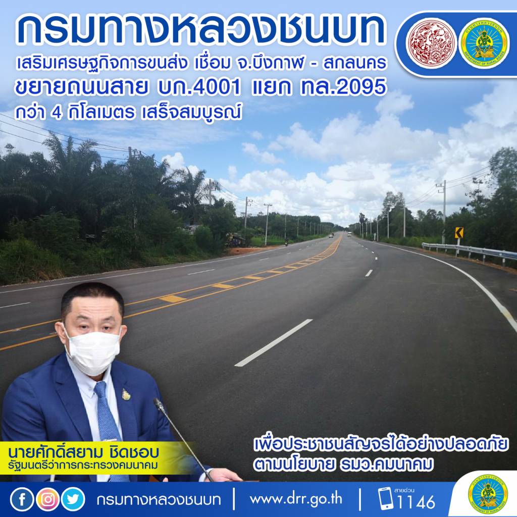 5 ตุลาคม 2564 เวลา 15:15กรมทางหลวงชนบท เสริมเศรษฐกิจการขนส่ง เชื่อม จ.บึงกาฬ - สกลนครขยายถนนสาย บก.4001 แยก ทล.2095 กว่า 4 กิโลเมตร เสร็จสมบูรณ์กรมทางหลวงชนบท (ทช.) ดำเนินโครงการก่อสร้างขยายถนนทางหลวงชนบทสาย บก.4001 แยกทางหลวงแผ่นดินหมายเลข 2095 - บ้านดอนอุดม ตำบลโนนสมบูรณ์ อำเภอเมือง จังหวัดบึงกาฬ เสร็จสมบูรณ์ กรมทางหลวงชนบท โดยสำนักงานทางหลวงชนบทที่ 15 (อุดรธานี) ให้รายละเอียดว่า ถนนทางหลวงชนบทสาย บก.4001 แยกทางหลวงแผ่นดินหมายเลข 2095 - บ้านดอนอุดม ตำบลโนนสมบูรณ์ อำเภอเมือง จังหวัดบึงกาฬ เป็นเส้นทางเชื่อมระหว่างถนนทางหลวงแผ่นดินหมายเลข 2095 กับทางหลวงแผ่นดินหมายเลข 222 รวมทั้งยังสามารถใช้เป็นเส้นทางลัด เดินทางระหว่างอำเภอโซ่พิสัยไปยังอำเภอเมือง เป็นเส้นทางที่สนับสนุนการขนส่งพืชผลทางการเกษตร เช่น ยางพาราฯ และเป็นเส้นทางที่ใช้เชื่อมไปยังแหล่งท่องเที่ยวที่สำคัญของจังหวัดบึงกาฬ ได้แก่ น้ำตกถ้ำพระ และหินสามวาฬ ได้อีกด้วย ทั้งนี้ เพื่อยกระดับมาตรฐานทางหลวงชนบท ส่งเสริมเศรษฐกิจการขนส่งการท่องเที่ยวในจังหวัดและพื้นที่ใกล้เคียง เพิ่มคุณภาพชีวิตที่ดีให้ประชาชนสามารถเดินทางได้อย่างสะดวกและปลอดภัย สอดรับกับนโยบายของนายศักดิ์สยาม ชิดชอบ รัฐมนตรีว่าการกระทรวงคมนาคม ทช.จึงได้ดำเนินโครงการก่อสร้างขยายถนนสาย บก.4001 โดยขยายถนนลาดยางเป็นผิวจราจรแบบแอสฟัลท์ติกคอนกรีต ขนาด 4 ช่องจราจร ช่วง กม.ที่ 35+050 ถึง กม.ที่ 39+090 ระยะทางรวม 4.040 กิโลเมตร มีผิวจราจรกว้าง 8 - 14 เมตร ไหล่ทางกว้างข้างละ 1 - 1.50 เมตร พร้อมทั้งติดตั้งเครื่องหมายอำนวยความปลอดภัยและไฟฟ้าแสงสว่างในสายทาง ปัจจุบันได้ดำเนินการก่อสร้างเสร็จสมบูรณ์และเปิดให้ประชาชนได้ใช้สัญจรเรียบร้อยแล้ว โดยใช้งบประมาณในการก่อสร้างรวม 49.870 ล้านบาท แชร์บทความนี้: