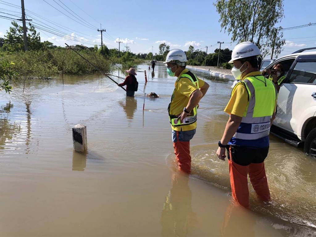 - ทล 3263 อยุธยา–ไผ่กองดิน ช่วง กม.ที่ 11+100 (จุดกลับรถใต้สะพานสีกุก) ระดับน้ำสูง 165 ซม. ใช้ทางกลับรถ
