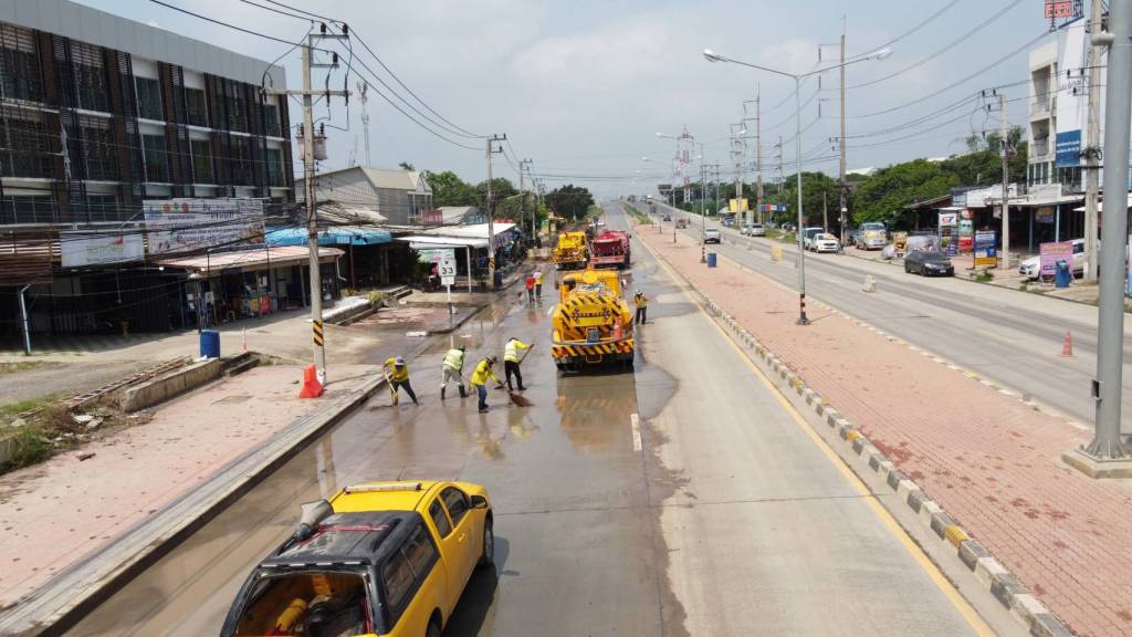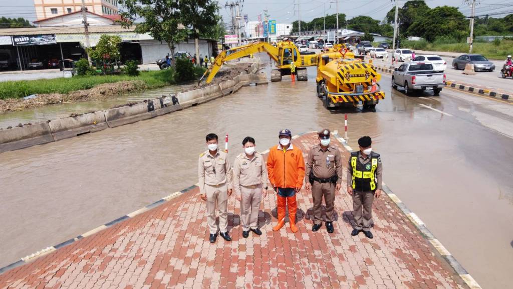 - ทล. 1 ตอน โนนปอแดง – ปากดง ช่วง กม.ที่ 419+036 (จุดกลับรถคลองพะยอม) ระดับน้ำสูง 40 ซม.