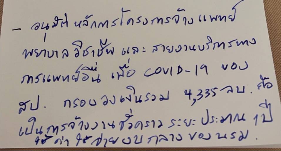 5 ตุลาคม 2564 เวลา 17:30ครม. เห็นชอบหลักการ ! “อนุทิน” ดันจ้างบุคลากรการแพทย์ หมอ พยาบาล สู้ศึกโควิด 19วันที่ 5 ตุลาคม 2564 ที่ทำเนียบรัฐบาล กรุงเทพมหานคร นายอนุทิน ชาญวีรกูล รองนายกรัฐมนตรีและรัฐมนตรีว่าการกระทรวงสาธารณสุข เปิดเผยต่อสื่อมวลชน ภายหลังการประชุม ครม. ระบุว่า ทางกระทรวงสาธารณสุข มีข้อเสนอให้ ครม. ช่วยกันพิจารณาในหลายเรื่อง แต่วันนี้ มีข่าวดีสำหรับคนไทย และคนทำงานด้านสาธารณสุข คือ เรื่องที่เคยผลักดันให้มีการจ้างแพทย์ พยาบาล และสายงานบริการด้านสาธารณสุข เพื่อรองรับสถานการณ์ระบาดของโควิด 19 ล่าสุด ทาง คณะรัฐมนตรีได้เห็นชอบในหลักการแล้ว กรอบวงเงิน 4.3 พันล้านบาท เพื่อเพิ่มบุคลากรในการดูแลรักษาผู้ป่วย แน่นอนว่า จำนวนคนทำงานที่มากขึ้น ย่อมจะเพิ่มประสิทธิภาพการดูแลประชาชน ทั้งยังเป็นการแบ่งเบาภาระของบุคลากรทางการแพทย์ซึ่งปฏิบัติหน้าที่อยู่ในปัจจุบัน จากนี้กระทรวงสาธารณสุขจะพิจารณาในรายละเอียดที่เกี่ยวข้อง เพื่อให้สอดคล้องกับงบประมาณ และสถานการณ์ต่อไป “เราเห็นคนทำงาน ทำงานเหนื่อยมาก หนักมาก ก็ต้องการที่จะหาทางช่วยแบ่งเบางาน ซึ่งมันจะทำให้แพทย์ พยาบาล เจ้าหน้าที่ ได้ผ่อนเกียร์บ้าง และเมื่อมีจำนวนคนทำงานมากขึ้น ประสิทธิภาพ ก็ต้องดีตามไปด้วย ต้องขอขอบคุณคณะรัฐมนตรี ที่เห็นความจำเป็นในเรื่องนี้ เช่นเดียวกับขอบคุณบุคลากรทางการแพทย์ทุกท่าน ที่ช่วยกัน พาคนไทย ต่อสู้กับโรคระบาด จนสถานการณ์คลี่คลายไปบ้างแล้ว ขอย้ำว่า ทางกระทรวงสาธารณสุข และรัฐบาล เห็นการทำงานของท่าน และไม่มีวันทอดทิ้งท่านอย่างแน่นอน ขณะที่ประชาชน ก็ต้องขอบคุณในการช่วยเหลือภาครัฐเสมอมา การควบคุมโรคระบาด หากปราศจากความร่วมไม้ร่วมมือจากประชาชน ย่อมสำเร็จยาก” ทั้งนี้ ผู้สื่อข่าวรายงานว่า ทางคณะรัฐมนตรี(ครม.) มีมติเห็นชอบให้กรมควบคุมโรค กระทรวงสาธารณสุข ดำเนินการจัดซื้อวัคซีนป้องกันโควิด-19 ของ AstraZeneca จากฮังการี จำนวน 400,000 โดส และมีมติเห็นชอบรับการสนับสนุนวัคซีน จากไอซ์แลนด์และเยอรมนี โดยไอซ์แลนด์มีความประสงค์ที่จะให้การสนับสนุนบริจาควัคซีนให้กับไทย โดยจะบริจาควัคซีน Pfizer จำนวน 100,000 โดส เยอรมนีจะให้การสนับสนุนบริจาควัคซีน AstraZeneca จำนวน 346,100 โดส แชร์บทความนี้: