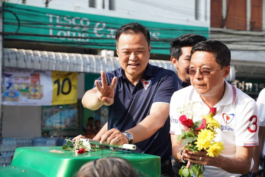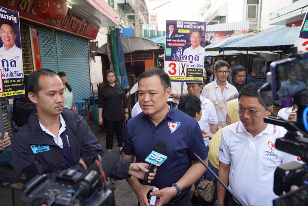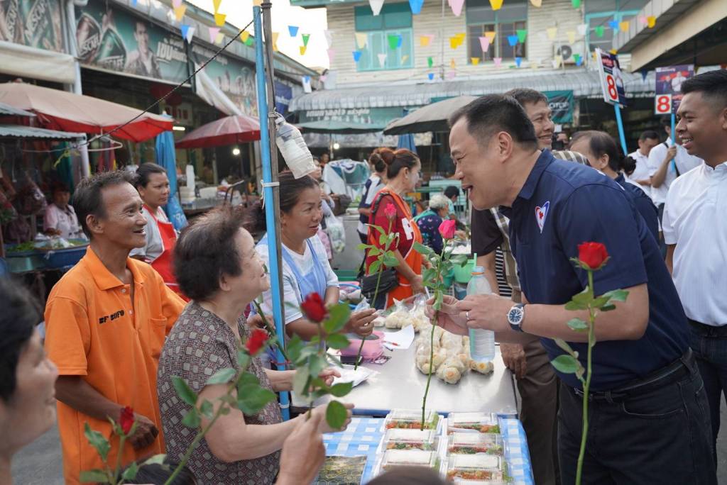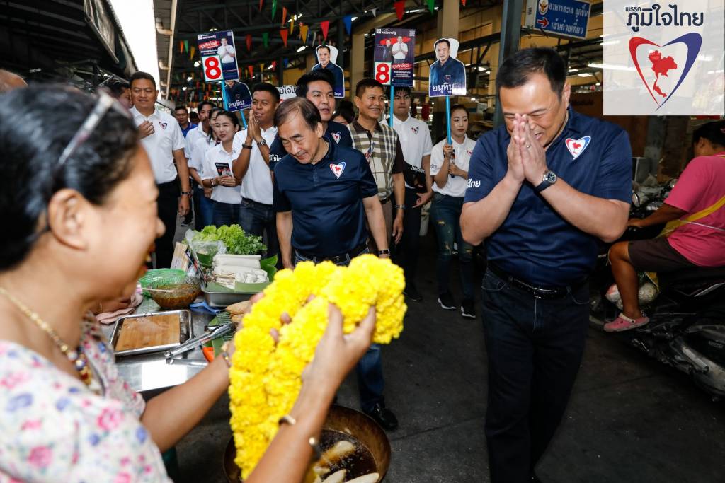และจากการเดินตลาด เราจำเป็นต้องกระตุ้นการใช้จ่ายของคนไทย อยากให้สนับสนุน เรื่อง Thailand First กินของไทย ใช้ของไทย สำหรับพรรคภูมิใจไทย เรามีสโลแกนทลายทุกข้อจำกัด ลดอำนาจรัฐ เพื่อปากท้องประชาชน เราจะทำทุกทางเพื่อให้ประชาชนมีช่องทางทำกินมากขึ้น