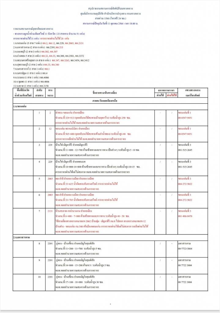 - การจราจรผ่านไม่ได้ 5 แห่ง