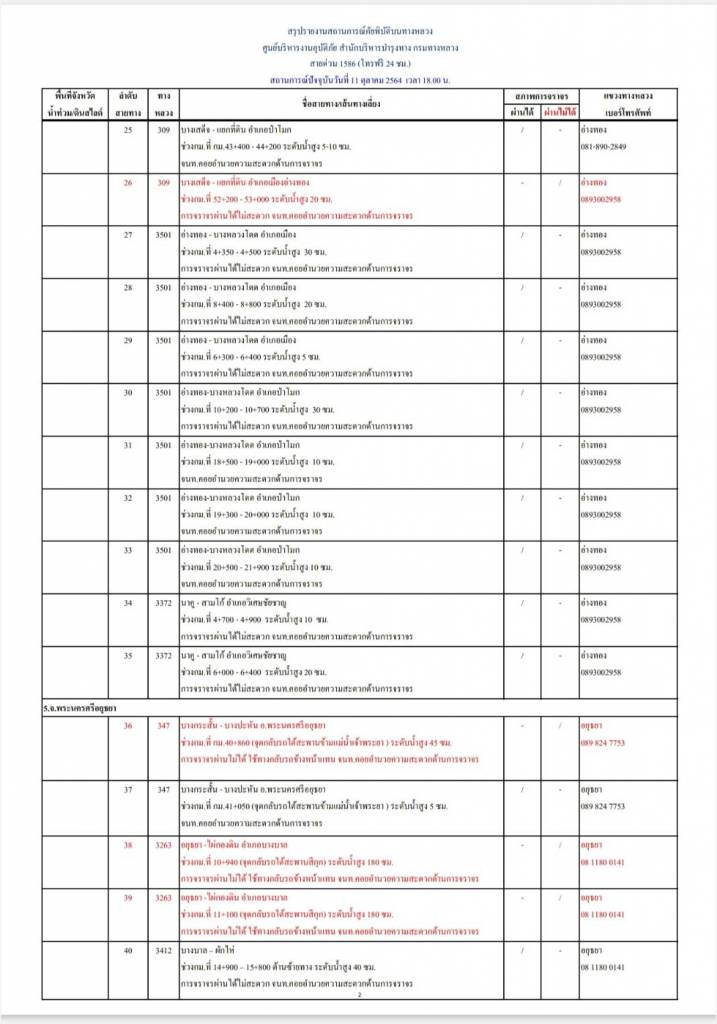 - การจราจรผ่านไม่ได้ 2 แห่ง