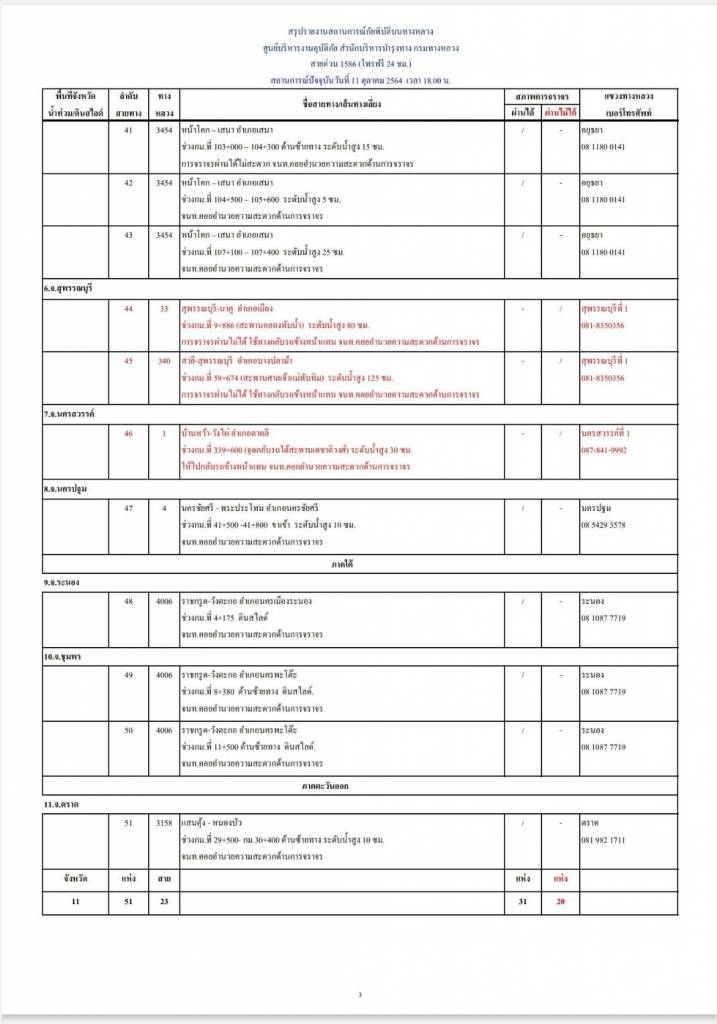 - การจราจรผ่านไม่ได้ 3 แห่ง
