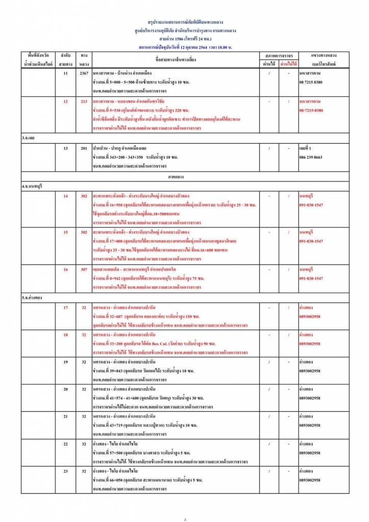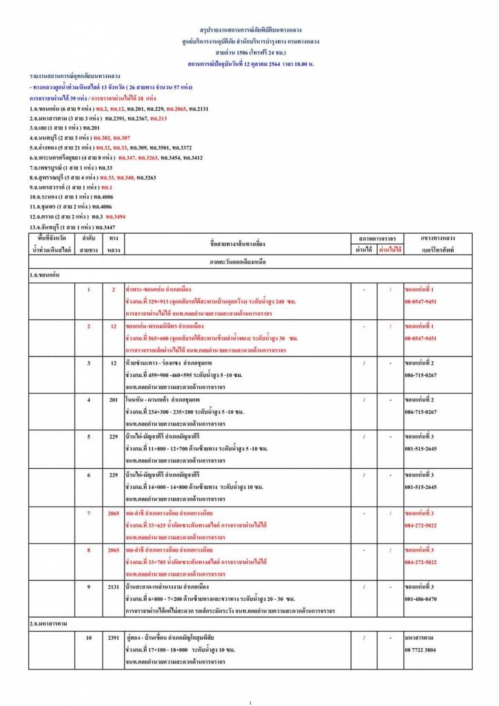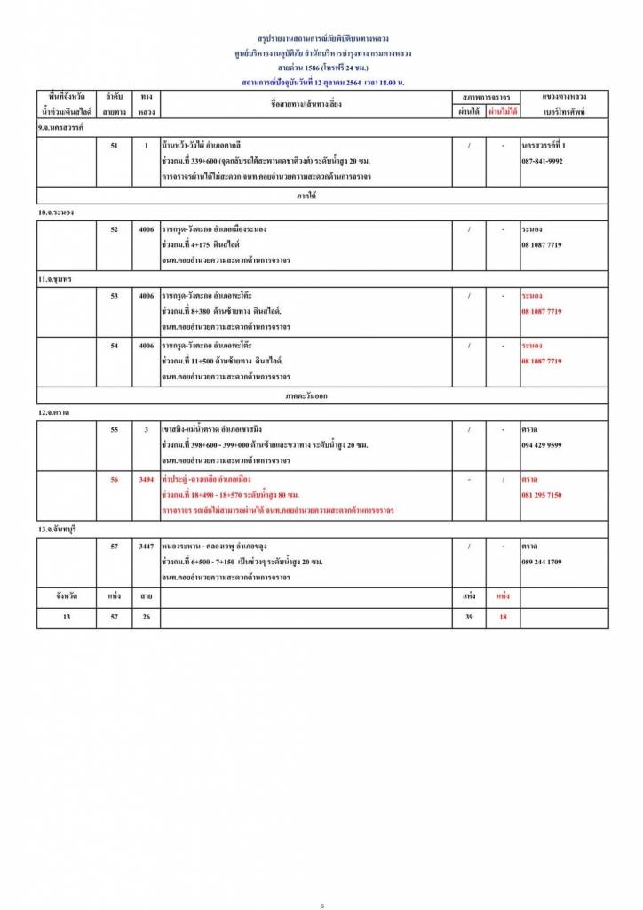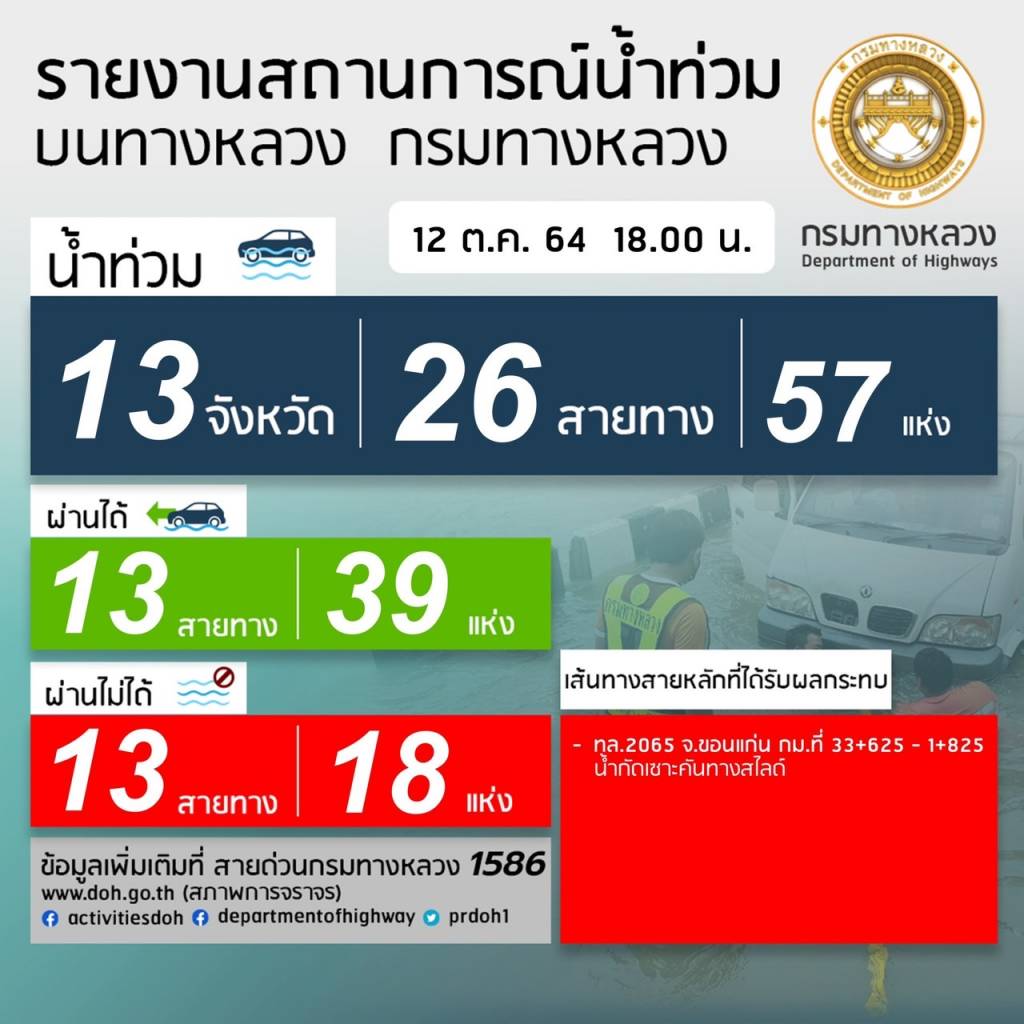ตาม นายศักดิ์สยาม ชิดชอบ รัฐมนตรีว่าการกระทรวงคมนาคม สั่งหน่วยงานในสังกัดเร่งเฝ้าสถานการณ์ น้ำท่วม/ดินสไลด์ ขณะนี้มี 13 จังหวัด รวม 57 แห่ง การจราจรผ่านได้ 39 แห่ง