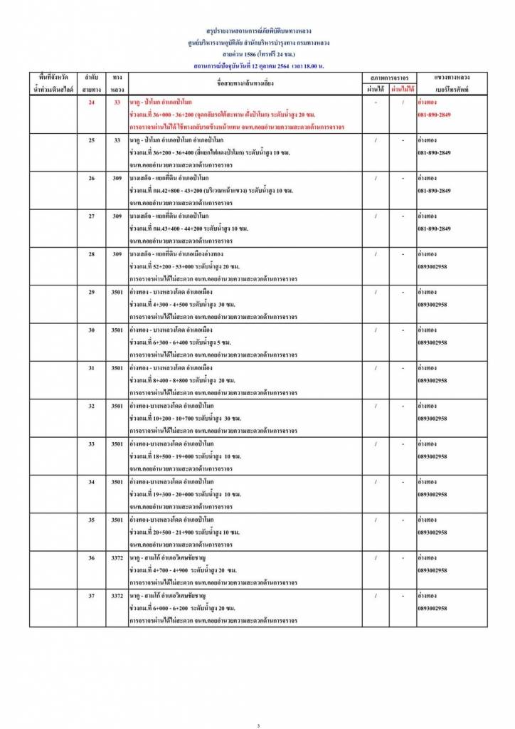 - การจราจรผ่านไม่ได้ 3 แห่ง