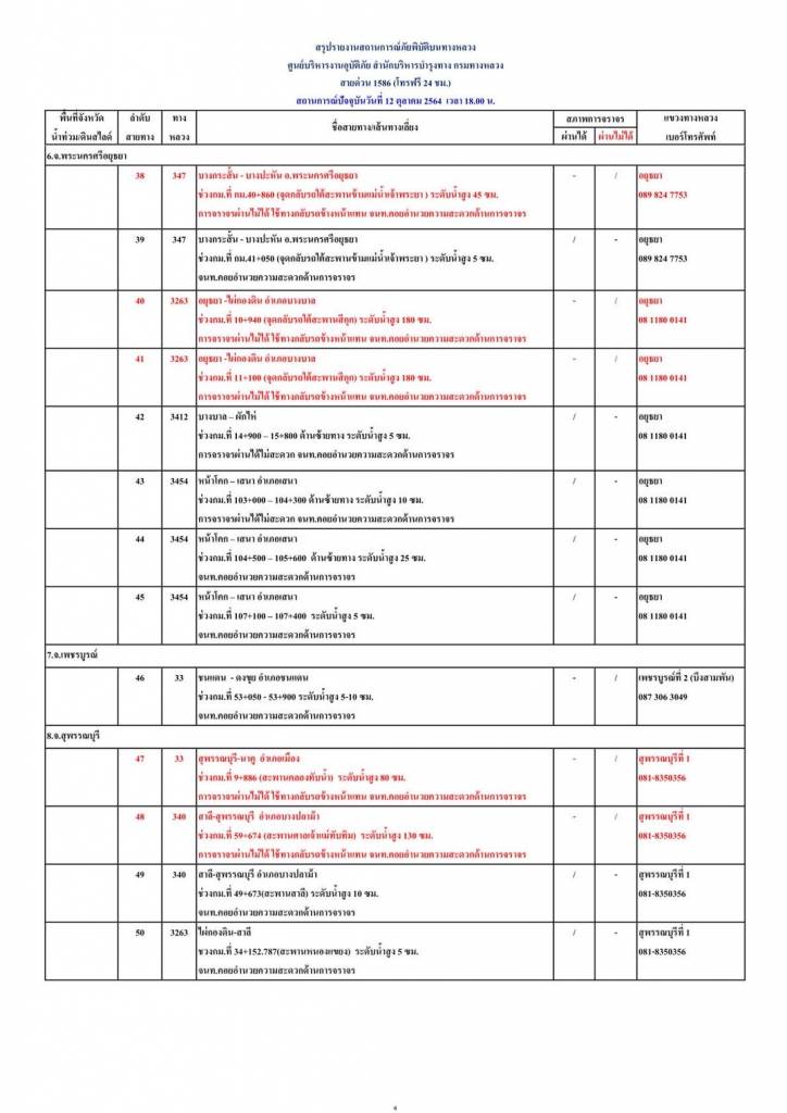 - การจราจรผ่านไม่ได้ 4 แห่ง