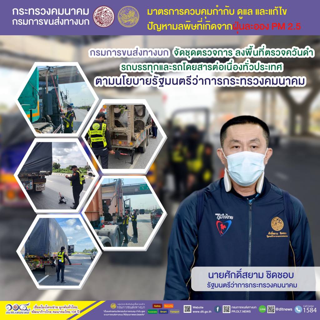 กรมการขนส่งทางบก ตรวจควันดำรถบรรทุกและรถโดยสารต่อเนื่องทั่วประเทศ มุ่งป้องกันและแก้ไขปัญหา PM2.5