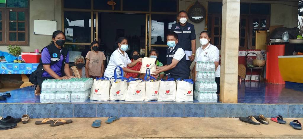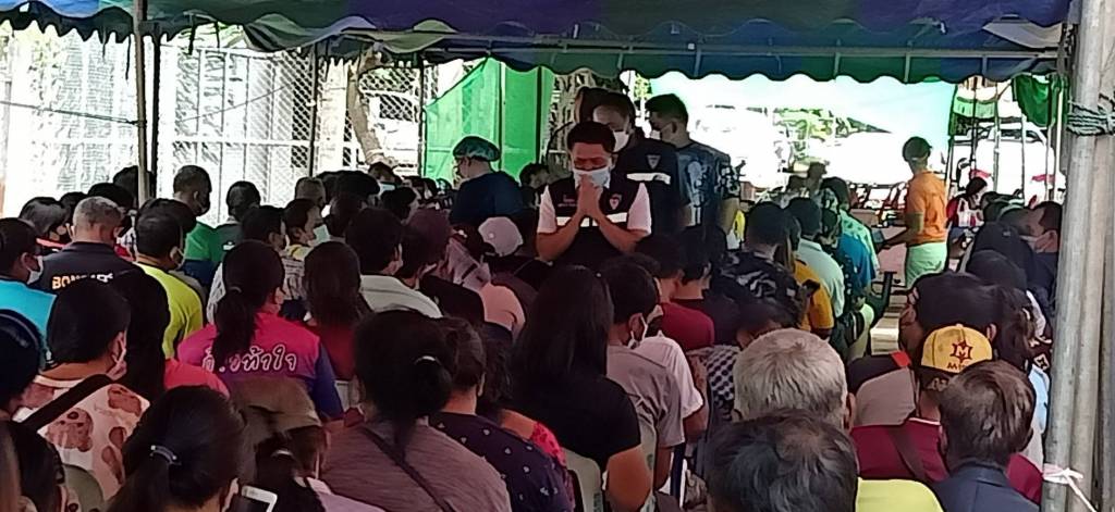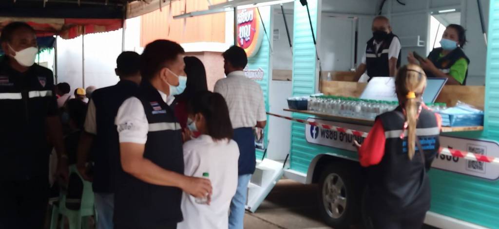 ต่อจากนี้ ลงพื้นที่เยี่ยมให้กำลังใจเจ้าหน้าที่ผู้ปฏิบัติงาน และประชาชนที่มาฉีดวัคซีนโรคโควิด-19 ณ โรงพยาบาลครบุรี พร้อมมอบน้ำดื่มและหน้ากากอนามัยให้กับผู้ที่มารับบริการฉีดวัคซีน