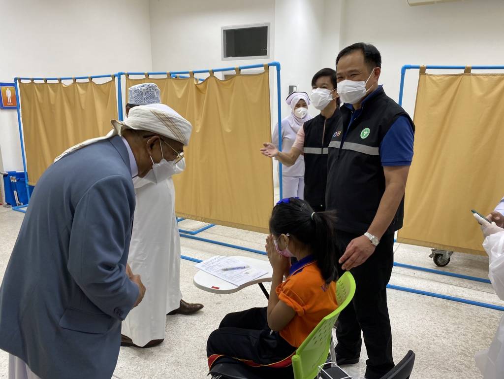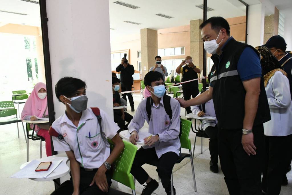 ผู้สื่อข่าวถามว่าจะมีการฉีดวัคซีนให้ครอบคลุมกลุ่มประชากรในภาคใต้ โดยเฉพาะ 4 จังหวัดที่มีการระบาดสูงอย่างไรบ้าง นายอนุทิน กล่าวว่า กระทรวงสาธารณสุขได้จัดส่งวัคซีนไฟเซอร์จำนวน 1 ล้านโดสลงพื้นที่ 4 จังหวัดชายแดนใต้ เพื่อฉีดให้กับประชาชน โดยเฉพาะนักเรียนอายุ 12-18 ปี ลูกๆ หลานๆ จะได้เปิดเรียน วันนี้มาเยี่ยมจุดบริการวัคซีน ก็ถามนักเรียนที่มาฉีดวันนี้ ก็ได้คำตอบว่า เด็กๆ อยากไปเรียนที่โรงเรียน ดังนั้น ขอให้ทุกคนมารับวัคซีน เพื่อให้เรากลับไปใช้ชีวิตอย่างมีปกติได้
