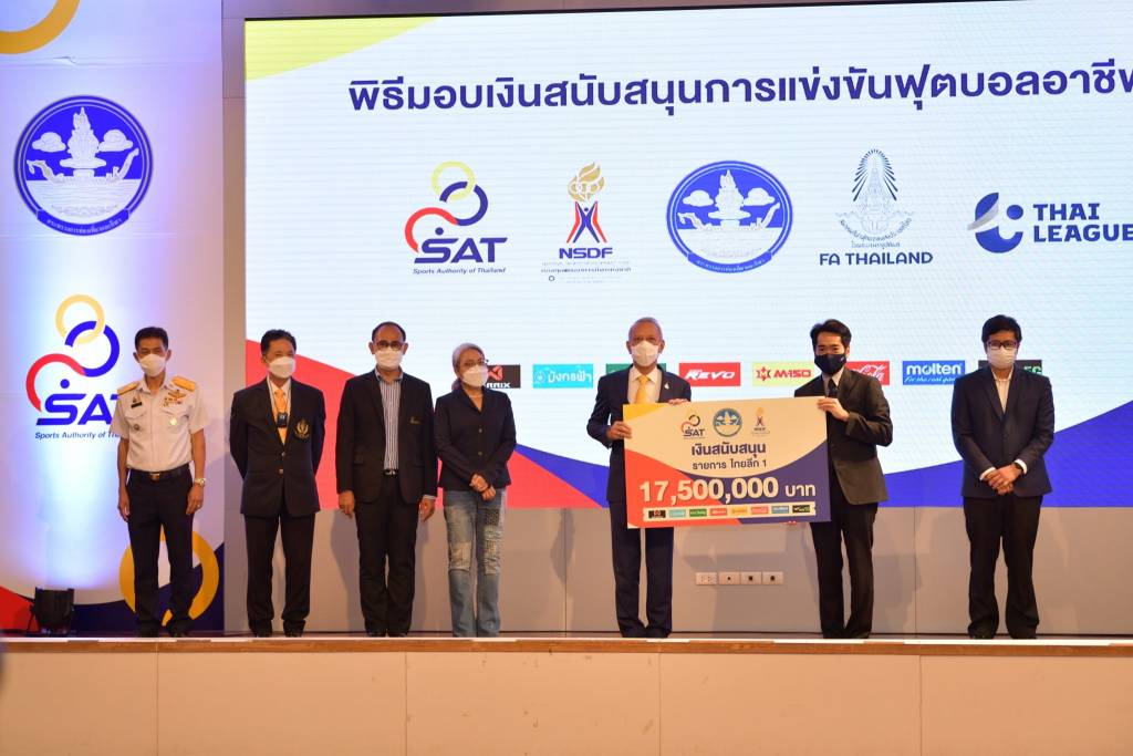 การกีฬาแห่งประเทศไทย ร่วมกับ กระทรวงการท่องเที่ยว และกองทุนพัฒนาการกีฬาแห่งชาติ ร่วมกันเดินหน้าขับเคลื่อนวงการฟุตบอลอาชีพในประเทศไทย ภายใต้สถานการณ์การแพร่ระบาดของโควิด -19 ด้วยการมอบเงินสนับสนุนการแข่งขันฟุตบอลอาชีพในทุกระดับให้แก่สมาคมกีฬาฟุตบอลแห่งประเทศไทยฯ และ บริษัท ไทยลีก จำกัด เพื่อสนับสนุนและผลักดันให้การแข่งขันฟุตบอลอาชีพ ยังสามารถก้าวหน้าไปได้ด้วยความมั่นคง และยั่งยืน โดยเงินสนับสนุนที่ มอบให้สมาคมกีฬาฟุตบอลแห่งประเทศไทยฯ และ บริษัท ไทยลีก จำกัด ในครั้งนี้ ประกอบด้วย รายการ เอฟเอ คัพ เป็นเงิน 6,000,000 บาท ,รายการไทยลีก 3 เป็นเงิน 16,000,000 บาท , รายการไทยลีก 2 เป็นเงิน 9,950,000 บาท และรายการ ไทยลีก 1 เป็นเงิน 17,500,000 บาท