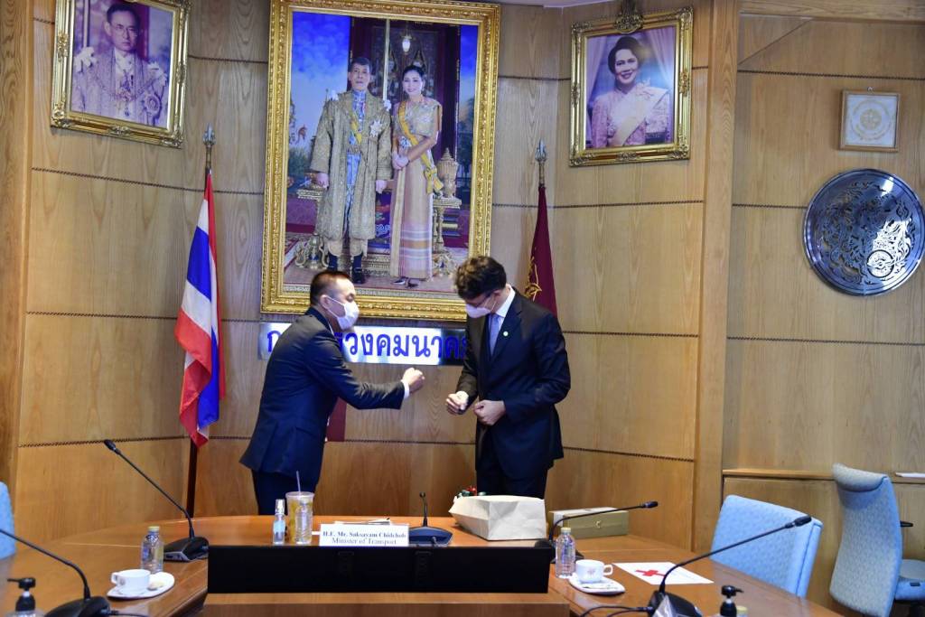 นายศักดิ์สยาม ชิดชอบ รัฐมนตรีว่าการกระทรวงคมนาคม ให้ H.E. Mr. Lorenzo Galanti เอกอัครราชทูตสาธารณรัฐอิตาลีประจำประเทศไทยเข้าพบ และหารือในประเด็นการพัฒนาโครงสร้างพื้นฐานและโครงการระบบรางของไทย โดยมี นายชยธรรม์ พรหมศร ปลัดกระทรวงคมนาคม และนายประภัทรเผ่า อาวะกุล ผู้อำนวยการกองต่างประเทศ สำนักงานปลัดกระทรวงคมนาคม เข้าร่วมหารือ เมื่อวันที่ 20 ตุลาคม 2564 ณ ห้องประชุมกระทรวงคมนาคม ที่ประชุมได้หารือในประเด็นต่าง ๆ ดังนี้