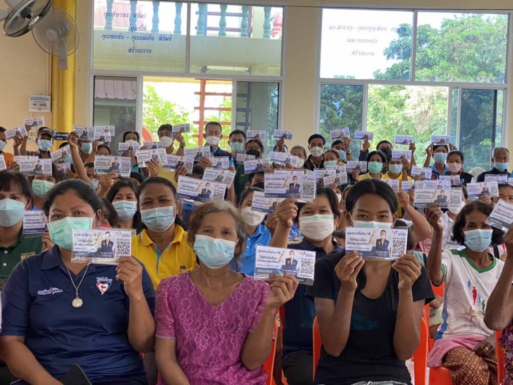 5. นำชุดตรวจ ATK ไปมอบให้พ่อแม่พี่น้องชาวบ้านเมืองไผ่ และหมู่บ้านที่อยู่ในความรับผิดชอบ ของรพ.สต.เมืองไผ่ ณ วัดแจ้งเมืองไผ่ ตำบลเมืองไผ่ อำเภอกระสัง