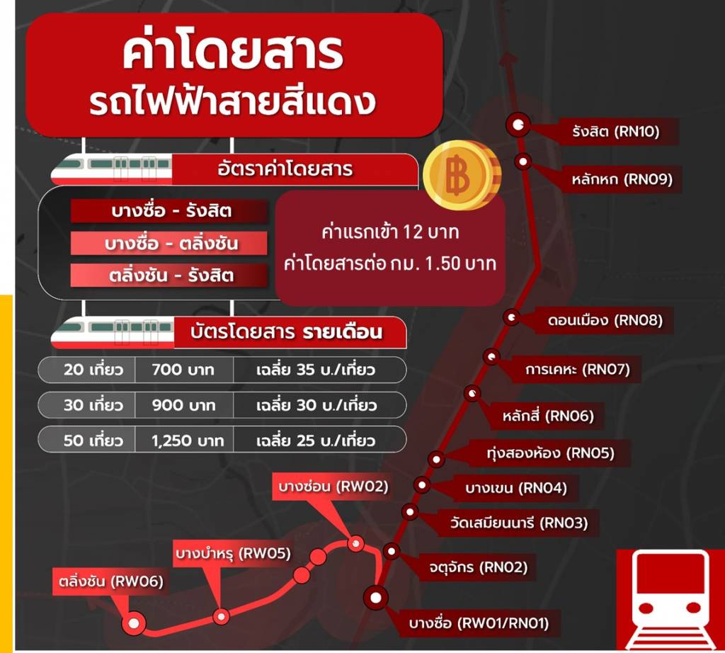 รวค. ได้มีข้อสั่งการให้ รฟท. วิเคราะห์ข้อมูลรายได้และค่าใช้จ่ายในการดำเนินงานรถไฟชานเมือง (สายสีแดง) ในการให้บริการช่วงที่ผ่านมา เพื่อนำข้อมูลดังกล่าวมาวิเคราะห์เพื่อจัดตารางเวลาของรถไฟและกำหนดอัตราค่าโดยสารแรกเข้าให้มีความเหมาะสม โดยต้องคำนึงถึงผลกระทบต่อค่าครองชีพของประชาชนเป็นหลัก และเมื่อได้ข้อสรุปแล้วให้หน่วยงานที่เกี่ยวข้องประชาสัมพันธ์ข้อมูลตารางการเดินรถ รูปแบบราคาค่าโดยสาร และข้อมูลอื่น ๆ ผ่านช่องทางต่าง ๆ ให้ประชาชนได้รับรู้อย่างทันท่วงที รวมทั้งได้สั่งการเพิ่มเติมให้ รฟท. ดำเนินการในเชิงรุกด้านการป้องกันไม่ให้บุคคลภายนอกเข้ามาลักลอบตัดสายอาณัติสัญญาณในระบบรถไฟฟ้า เช่น การดำเนินคดีให้ถึงที่สุด รวมถึงการขยายผล ให้เป็นแบบอย่างในการป้องปรามไม่ให้เกิดการกระทำผิดซ้ำ เพื่อให้ความตรงต่อเวลาและความน่าเชื่อถือในการบริการเดินรถไฟมีค่าอยู่ในเกณฑ์มาตรฐาน