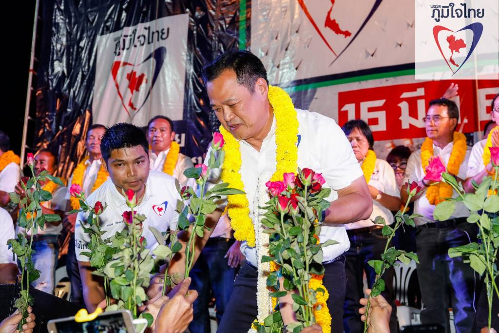 17 มีนาคม 2562 เวลา 00:32เวทีปราศรัยใหญ่ กทม.ปริมณฑล "อนุทิน ชาญวีรกูล"ประกาศจะปกป้องผลประโยชน์ทุกกระเบียดนิ้ว“อนุทิน” นำทัพภท.ปราศรัยใหญ่รังสิต ลั่น พรรคเป็นของจริง ไม่ได้ตั้งขึ้นเพื่อภารกิจบางอย่าง ชูบุคลากร-นโยบาย มีคุณภาพพร้อมทำงานทันที อ้อนเลือกเป็นรัฐบาลชุดหน้าเพื่อความมั่นคง-ปกป้องผลประโยชน์ทุกกระเบียดนิ้ว เมื่อเวลา 20.00 น. วันที่ 16 มี.ค. ที่ลานกิจกรรมตรงข้ามห้างสรรพสินค้าฟิวเจอร์ปาร์ค รังสิต จ.ปทุมธานี นายอนุทิน ชาญวีรกูล หัวหน้าพรรคภูมิใจไทย พร้อมด้วยนายสรอรรถ กลิ่นประทุม ประธานคณะที่ปรึกษาพรรคภูมิใจไทย นายชาดา ไทยเศรษฐ รองหัวหน้าพรรคภูมิใจไทย พ.อ.ดร.เศรษฐพงค์ มะลิสุวรรณ โฆษกพรรคภูมิใจไทย นายพิพัฒน์ ลาภปราถนา อดีตประธานสภากทม. นายกรวีร์ ปริศนานันทกุล ทีมยุทธศาสตร์ด้านการท่องเที่ยวและกีฬา นายศุภชัย ใจสมุทร นายทะเบียนพรรค และคณะกรรมการบริหารพรรค ร่วมกันขึ้นเวทีปราศรัยใหญ่ ในเขตพื้นที่กรุงเทพมหานครและปริมณฑล เพื่อนำเสนอนโยบายพรรค โดยบรรยากาศเป็นไปอย่างคึกคัก มีประชาชนเดินทางมาร่วมรับฟังจำนวนมาก นายอนุทิน กล่าวปราศรัยตอนหนึ่งว่า ขอให้พี่น้องกาเลือกพรรคภูมิใจไทยเพื่อให้ผู้สมัครสามารถเดินเข้าสภาฯได้ทุกคน ซึ่งหลายนโยบายของเราจับต้องได้ ไม่ได้เพ้อฝัน หรือพูดเอาใจพี่น้อง แต่ทุกนโยบายมีความยั่งยืน เป็นประโยชน์กับประชาชน สามารถทำได้ทันที เรามีกฎหมายร่างไว้แล้ว เลือกเราเมื่อไหร่ก็ยัดกฎหมายเข้าสภาฯทำได้เลย ส่วนเรื่องค่าแรงขั้นต่ำที่มีบางพรรคบอกว่าจะขึ้นเท่านั้นเท่านี้ มาให้ความหวัง แต่อาจทำไม่ได้ ถึงแม้จะทำได้ เราก็จะมีค่าใช้จ่ายเพิ่มมากขึ้น แต่นโบายของเราจะไม่รบกวนงบประมาณแผ่นดิน และไม่แจกเงินเพื่อเอาใจพี่น้อง เพราะจะทำให้ฐานการเงินของประเทศย่ำแย่ เหล่านี้เป็นสิ่งโบราณ พวกเราไม่ใช่ขอทาน ไม่ใช่คนงอมืองอเท้า นั้นคือการดูถูกประชาชน แต่พรรคเรามองทุกคนมีความรู้ความสามารถ ต้องทลายทุกอุปสรรค สร้างกฎหมายใหม่ที่แก้จุดติดขัด เปิดโอกาสให้การสนับสนุนประชาชน ผู้ประกอบการ นักลงทุน ทุกคนต้องทำมาหากินได้สะดวก “เราเป็นพรรคการเมืองจริง ไม่ได้ตั้งขึ้นมาเพื่อภารกิจบางอย่าง พรรคเราตั้งมานาน คนทำงานการเมืองพรรคเรามีระดับทุกคน เป็นนักการเมืองที่มีความทุ่มเทให้ประชาชน และบ้านเมือง เป็นถึงอดีตรัฐมนตรี อดีตประธานรัฐสภา คณะกรรมาธิการต่างๆ แต่เหล่านั้นคือหัวโขน เมื่อเราพ้นไปก็ลงไปขลุกกับประชาชนเหมือนเดิม เราต้องทำตัวเป็นคนธรรมดาใกล้ชิดประชาชนจะได้รู้ว่าเขาอยากได้อะไรที่ทำให้