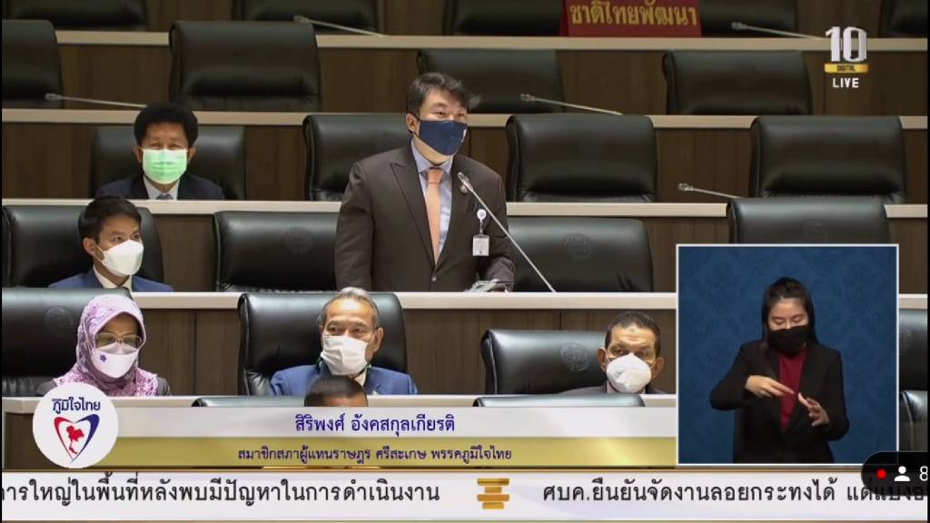 วันที่ 11 พฤศจิกายน 2564 นายสิริพงศ์ อังคสกุลเกียรติ สมาชิกสภาผู้แทนราษฎรจังหวัดศรีสะเกษ เขต 1 พรรคภูมิใจไทย หารือเรื่องปัญหาราคาข้าวตกต่ำ จึงอยากฝากไปยังกระทรวงพาณิชย์เพิ่มเติม ในเรื่องของการประกันรายได้ ซึ่งเป็นหลักคิดที่ดี แต่ในทางปฏิบัติเวลาเกษตรกรไปขายข้าว ไม่สามารถขายข้าวได้ในราคาที่คาดการณ์ไว้ ดังนั้น จึงขอให้ทางกระทรวงพาณิชย์แก้ปัญหาอย่างเร่งด่วน เช่น ไม่ว่าจะเป็นการเพิ่มค่าใช้จ่ายในการพัฒนาคุณภาพข้าว หรือการดันเพดานส่วนต่างให้สูงขึ้น ก็จะเป็นประโยชน์ แน่นอนว่าการพัฒนาคุณภาพข้าวเป็นสิ่งจำเป็น แต่นั่นคือการแก้ปัญหาในระยะยาว และระยะสั้นก็ขอให้แก้ปัญหาให้เกษตรกรก่อน