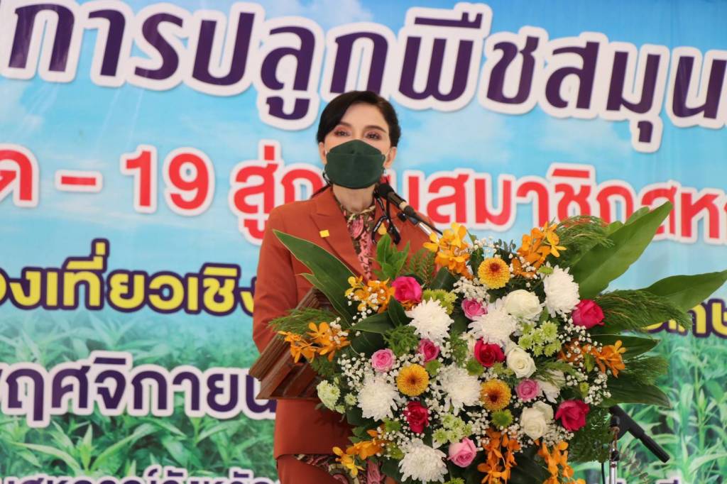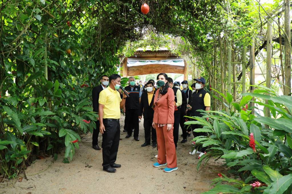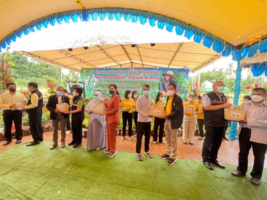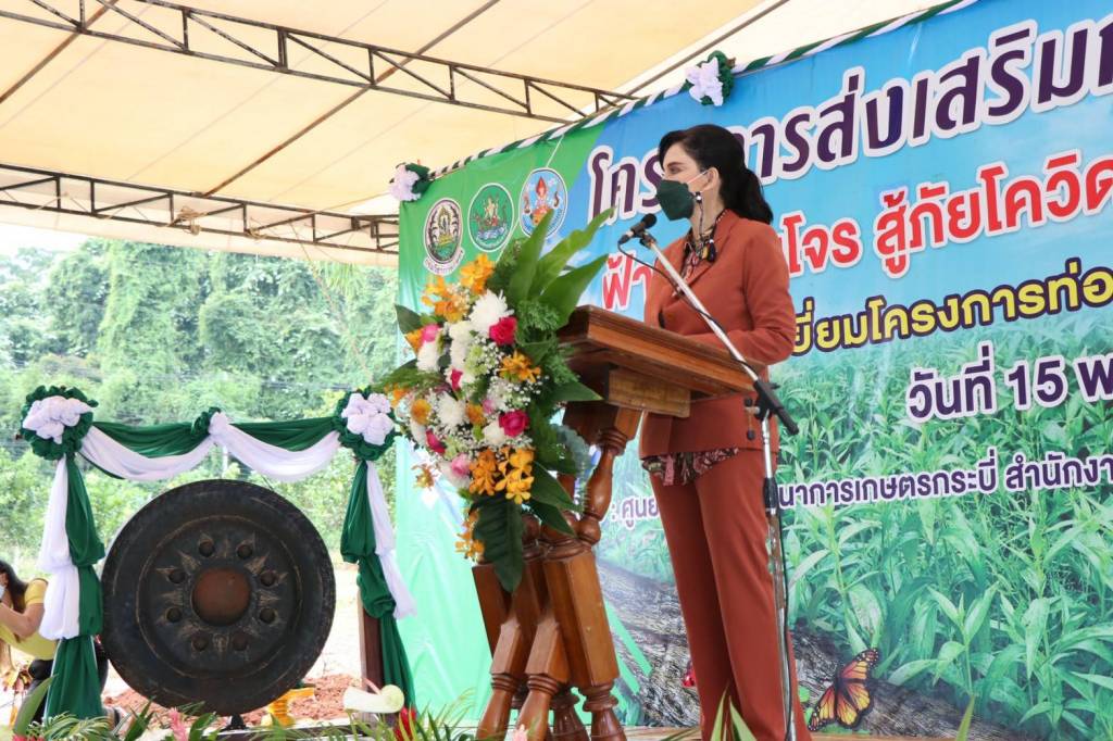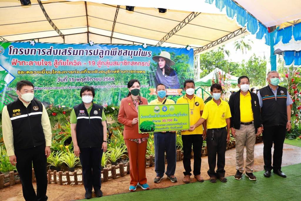 โอกาสนี้ ได้มอบพันธุ์กล้าฟ้าทะลายโจร ให้แก่สมาชิกสหกรณ์จำนวน 5 สหกรณ์ ตลอดจนเยี่ยมชมห้องปฏิบัติการการผลิตชีวภัณฑ์ โครงการขยายผลเทคโนโลยีการใช้ชีวภัณฑ์และปุ๋ยชีวภาพเพื่อการผลิตพืชปลอดภัยและอินทรีย์ โครงการท่องเที่ยวเชิงอนุรักษ์ด้านการเกษตร โครงการอนุรักษ์พันธุกรรมพืชอันเนื่องมาจากพระราชดำริ โครงการอนุรักษ์พันธุ์กล้วยไม้รองเท้านารีอันเนื่องมาจากพระราชดำริ และโครงการผลิตพืชแบบผสมผสาน ในการนี้ได้เป็นประธานปลูกต้นฟ้าทะลายโจรร่วมกับผู้บริหารส่วนราชการ และเยี่ยมชมพื้นที่การปลูกพืช และผลไม้ แบบผสมผสานภายในพื้นที่อีกด้วย