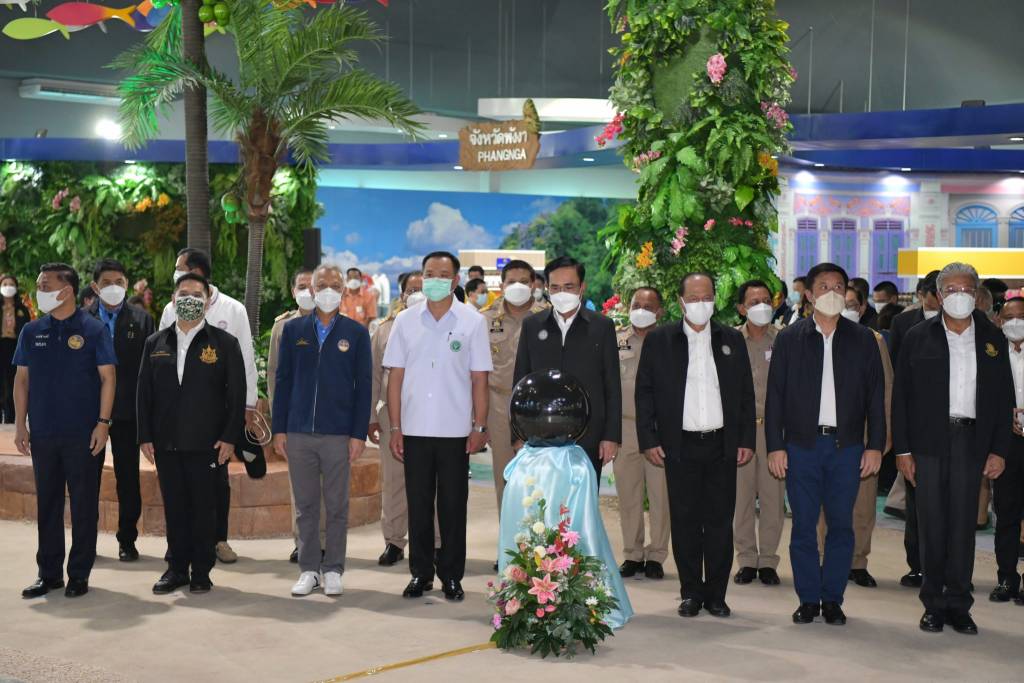ซึ่งนายกรัฐมนตรีเข้าสู่พิธีเปิด โดยทำการแตะลูกแก้วเพื่อเปิดศูนย์ OTOP อันดามัน อย่างเป็นทางการ จากนั้น นายกรัฐมนตรีเยี่ยมชมซุ้มจำหน่ายผลิตภัณฑ์ชุมชน สินค้า OTOP 6 จังหวัดอันดามัน และสอบถามผู้ประกอบการร้านค้า ถึงการดำเนินกิจการในขณะนี้ หลังจากที่รัฐบาลได้ทยอยเปิดประเทศต้อนรับนักท่องเที่ยว โอกาสนี้ นายกรัฐมนตรียังอุดหนุนสินค้าอัตลักษณ์ประจำถิ่น หลายอย่าง อาทิ ผ้าบาติก น้ำพริกมะขามกุ้ง กระเป๋าจักสาน โดยได้เสนอแนะให้มีการพัฒนาออกแบบสินค้า ผลิตภัณฑ์ให้มีความหลากหลาย ให้เป็นที่น่าสนใจ ซึ่งจะช่วยขยายตลาดให้กว้าง