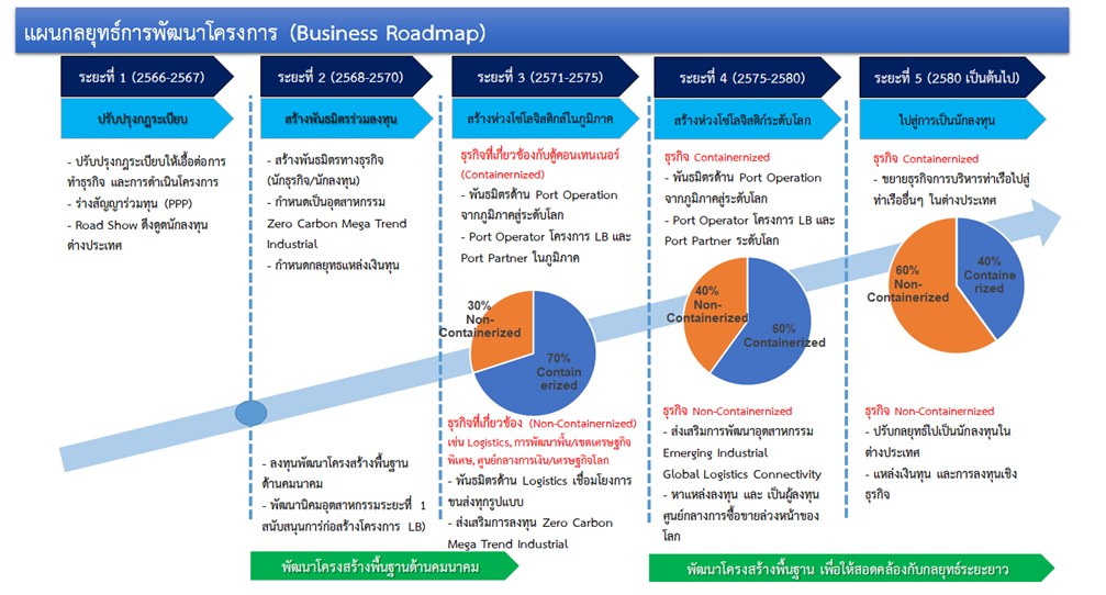 โดยมีนโยบายหลักในการพัฒนาเชิงธุรกิจต่อยอดในอนาคต ไม่ใช่เฉพาะการเป็นผู้พัฒนาโครงสร้างพื้นฐานเพียงอย่างเดียว แต่จะต้องคำนึงถึงการพัฒนาในการที่จะเป็นผู้ลงทุนในธุรกิจอื่น ๆ ที่เกี่ยวข้องด้วย ซึ่งจะทำให้โครงการมีความน่าสนใจสามารถดึงดูดนักลงทุนจากต่างชาติให้เข้ามาลงทุน และที่สำคัญจะต้องคำนึงถึงความเป็นไปได้ของโครงการฯ และการปรับปรุงข้อกฎหมาย และสิทธิประโยชน์อื่น ๆ ประกอบด้วย