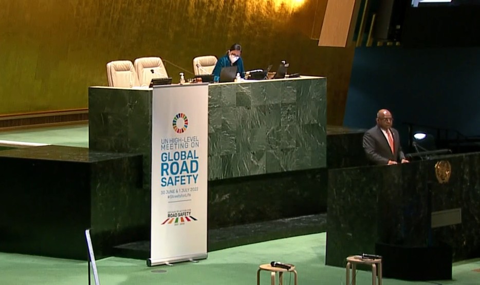 ศักดิ์สยาม กล่าวถ้อยแถลงในการประชุม Supporting Event for the High – Level Meeting on Road Safety เวทีสหประชาชาติ ระบุไทยใช้แนวคิด “วิถีแห่งระบบที่ปลอดภัย หรือ Safe System Approach” ในการพัฒนาโครงข่ายถนน และสภาพแวดล้อมด้านการขับขี่ให้ปลอดภัย พร้อมโชว์ยางพาราหุ้มกำแพงคอนกรีต (Rubber Fender Barrier: RFB)