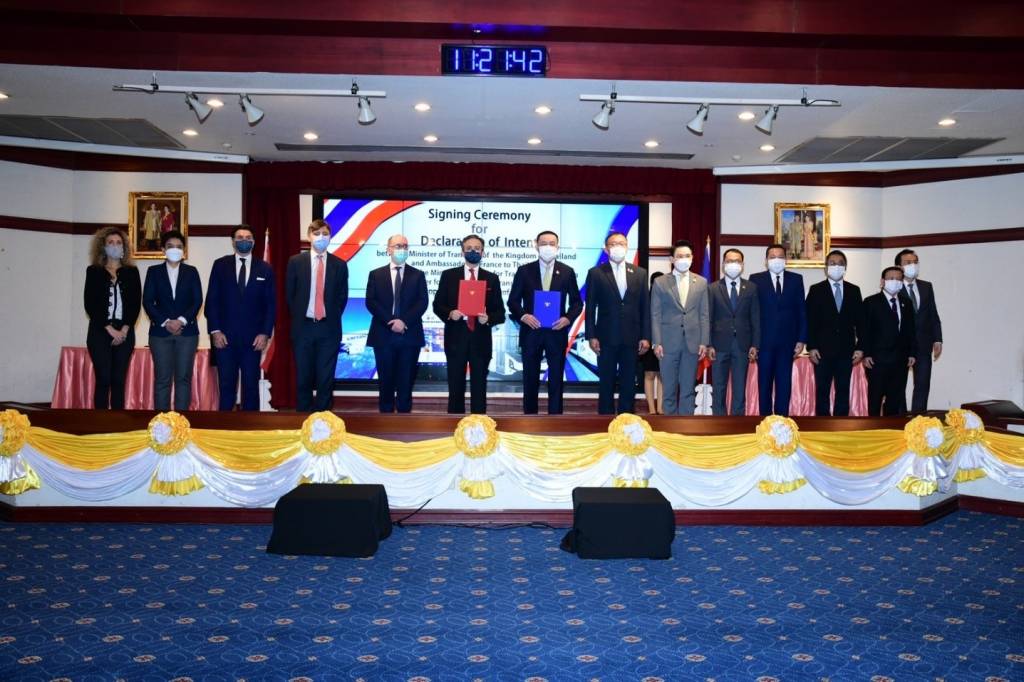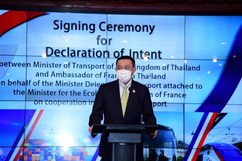 นายศักดิ์สยาม ชิดชอบ รัฐมนตรีว่าการกระทรวงคมนาคม และนายตีแยรี มาตู (H.E. Mr. Thierry Mathou) เอกอัครราชทูตสาธารณรัฐฝรั่งเศสประจำประเทศไทย เป็นประธานในพิธีลงนามปฏิญญาแสดงเจตจำนงระหว่างรัฐมนตรีว่าการกระทรวงคมนาคมแห่งราชอาณาจักรไทยและเอกอัครราชทูตสาธารณรัฐฝรั่งเศสประจำประเทศไทยในนามของรัฐมนตรีช่วยว่าการกระทรวงการเปลี่ยนผ่านทางนิเวศวิทยา กำกับดูแลการคมนาคมแห่งสาธารณรัฐฝรั่งเศส ว่าด้วยความร่วมมือในสาขาคมนาคมขนส่ง ในวันที่ 8 ธันวาคม 2564 ณ อาคารสโมสรและหอประชุมกระทรวงคมนาคม โดยมี นายวิรัช พิมพะนิตย์ ที่ปรึกษารัฐมนตรีว่าการกระทรวงคมนาคม นายชยธรรม์ พรหมศร ปลัดกระทรวงคมนาคม นายสรพงศ์ ไพฑูรย์พงษ์ รองปลัดกระทรวงคมนาคม หัวหน้าหน่วยงานในสังกัดกระทรวงคมนาคมที่เกี่ยวข้อง และบริษัทเอกชนของฝรั่งเศสที่ให้ความสนใจ เข้าร่วมพิธีลงนาม