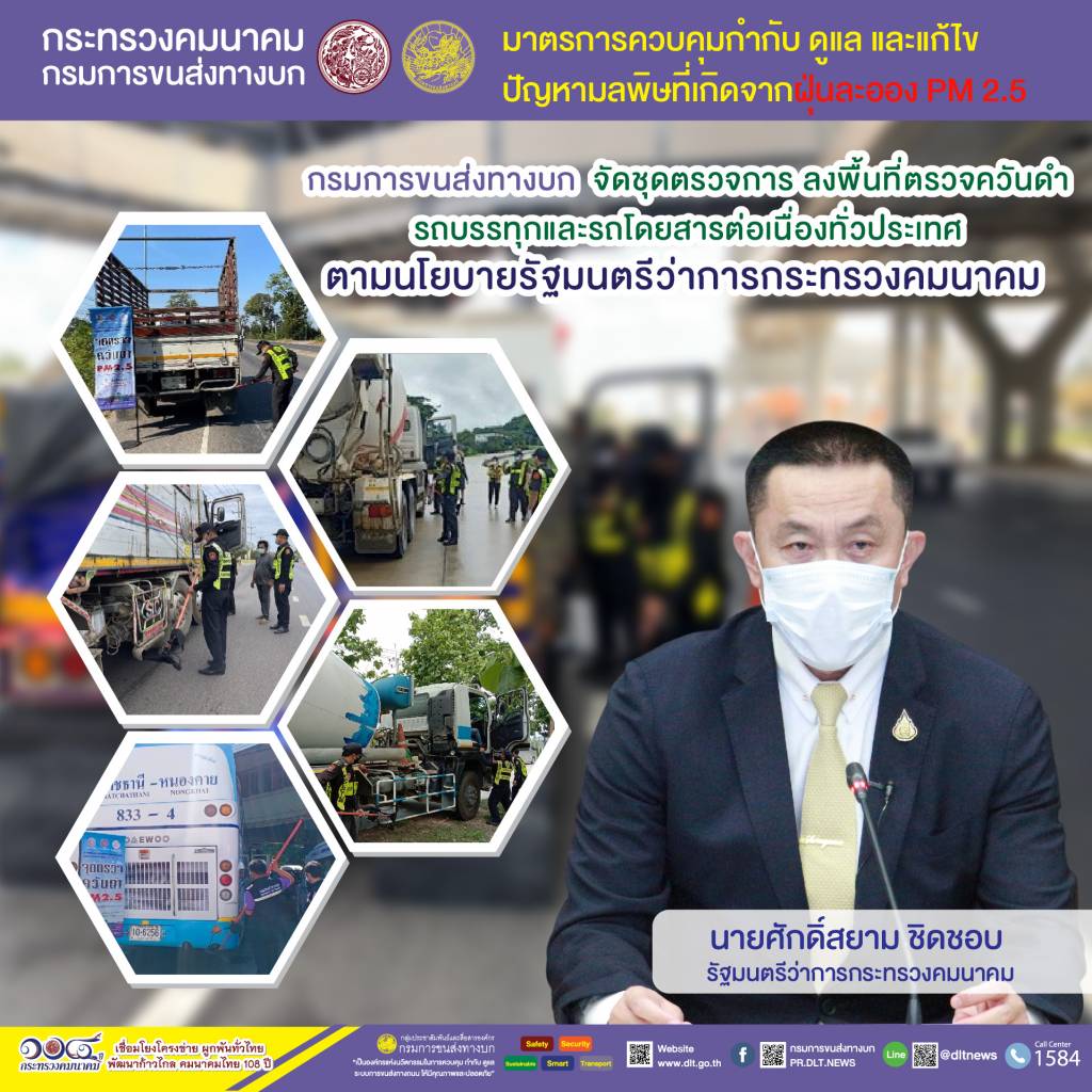 กรมการขนส่งทางบก ขานรับนโยบาย รมว.คมนาคม ตรวจควันดำรถบรรทุกและรถโดยสารต่อเนื่องทั่วประเทศ มุ่งป้องกันและแก้ไขปัญหา PM2.5