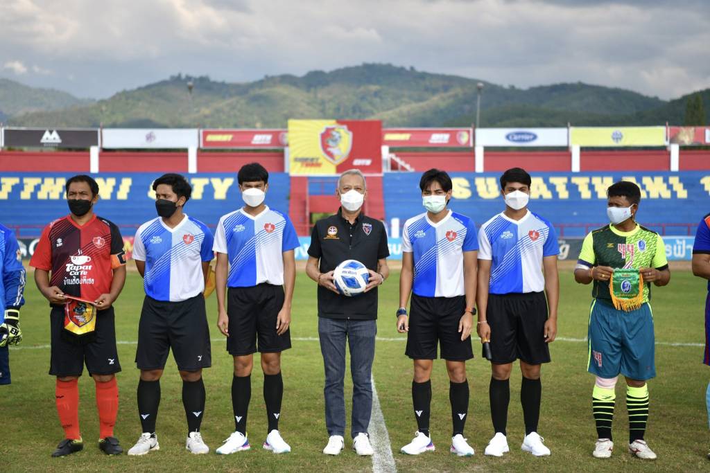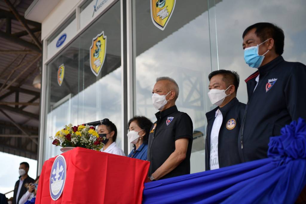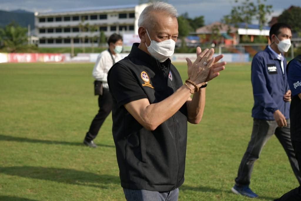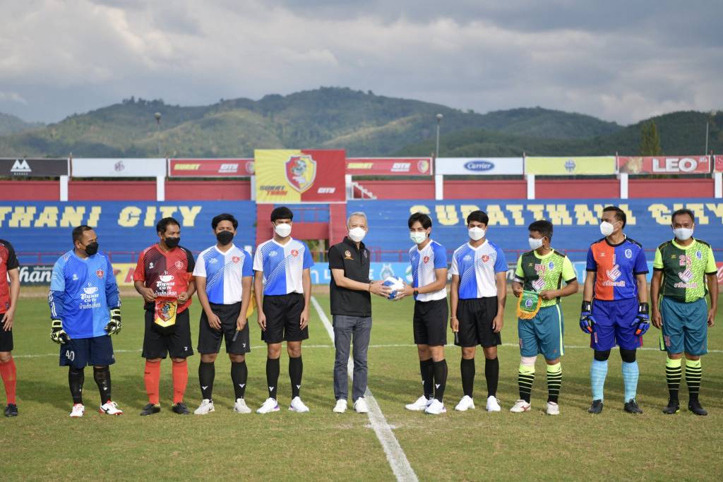 จากนั้น (15.30 น.) รมว.ท่องเที่ยวและกีฬา เดินทางไปที่ สนามกีฬาเทศบาลตำบลบ้านส้อง เพื่อเปิดการแข่งขันกีฬาฟุตบอลรายการฟุตบอลอาวุโสเวียงสระซิตี้ และพบปะประชาชนในพื้นที่ โดยชาวตำบลบ้านส้อง ร่วมกันเต้นบาสโลบเพื่อเป็นการต้อนรับอย่างพร้อมเพรียง พร้อมมอบทุนการศึกษา อุปกรณ์กีฬาให้กับโรงเรียนในพื้นที่ตำบลบ้านส้องอีกด้วย