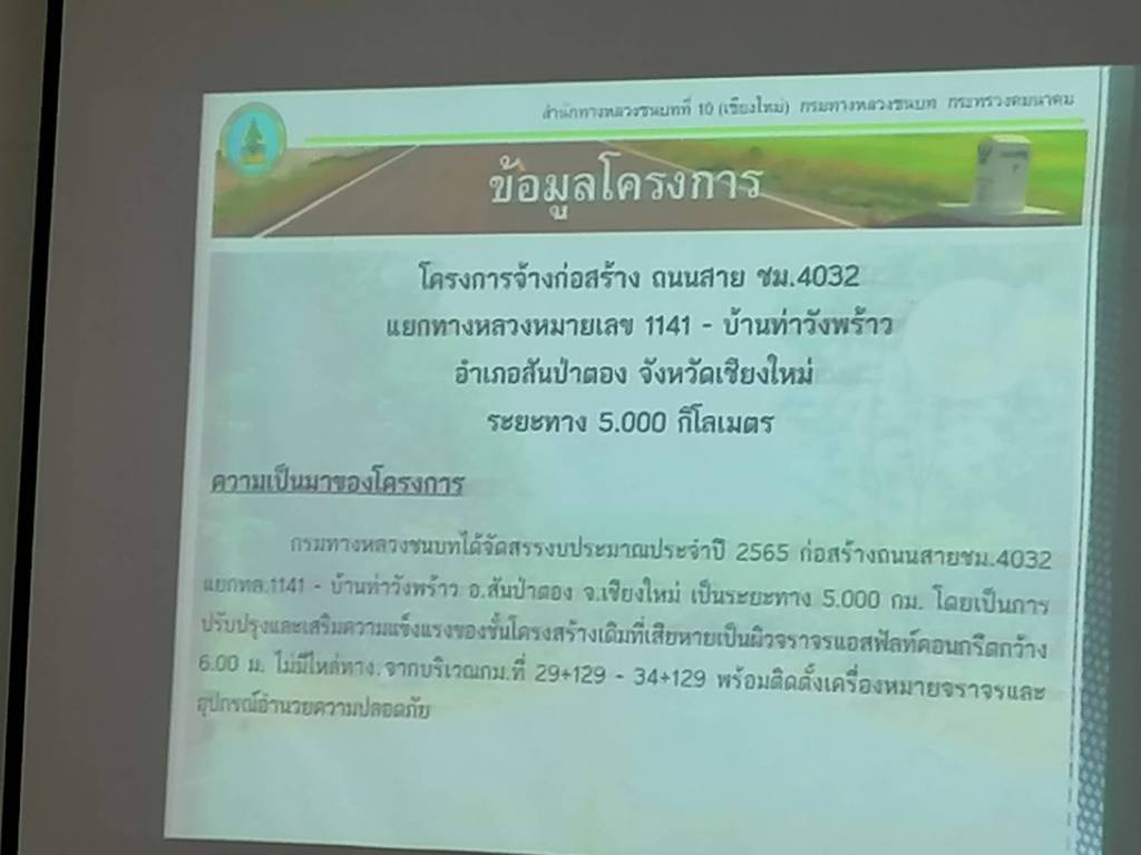 ส.ส.ศรีนวล บุญลือ ร่วมประชุมกับกรมทางหลวงชนบท นายกอบต. กำนัน ผู้ใหญ่บ้าน อบต.แม่ก๊า อ.สันป่าตอง จ.เชียงใหม่ เรื่องทำถนนหมายเลข 4032 แม่ก๊า เชื่อม ต.ท่าวังพร้าว เพื่อแก้ไขปัญหาความเดือดร้อนของปชช.ที่สัญจรผ่านไปมาให้เกิดความสะดวกสบายยิ่งขึ้น