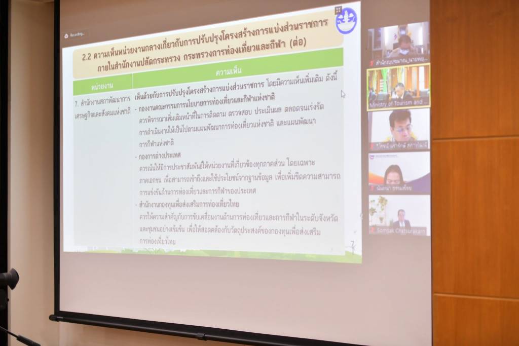 10 มกราคม 2565 เวลา 15:23รมว.พิพัฒน์ รัชกิจประการ เป็นประธานการประชุมคณะกรรมการพัฒนาโครงสร้างระบบราชการของกระทรวงการท่องเที่ยวและกีฬา ครั้งที่ 1/2565วันที่ 10 มกราคม 2565 เวลา 13.30 น. นายพิพัฒน์ รัชกิจประการ รัฐมนตรีว่าการกระทรวงการท่องเที่ยวและกีฬา เป็นประธานการประชุมคณะกรรมการพัฒนาโครงสร้างระบบราชการของกระทรวงการท่องเที่ยวและกีฬา ครั้งที่ 1/2565 โดยมี นายเขมพล อุ้ยตยะกุล เลขานุการรัฐมนตรีกระทรวงการท่องเที่ยวและกีฬา นายโชติ ตราชู ปลัดกระทรวงการท่องเที่ยวและกีฬา ผู้บริหารและผู้แทนจากหน่วยงานที่เกี่ยวข้อง เข้าร่วม ผ่านระบบสื่ออิเล็กทรอนิกส์ (Video Conference) Zoom meeting ณ ห้องประชุม 1 ชั้น 2 กระทรวงการท่องเที่ยวและกีฬา มีเรื่องเพื่อเสนอพิจารณา ดังนี้ 1.การขอปรับปรุงโครงสร้างการแบ่งส่วนราชการภายในสำนักงานปลัดกระทรวงกระทรวงการท่องเที่ยวและกีฬา 2.ความสำคัญด้านการท่องเที่ยวและกีฬาต่อการพัฒนาประเทศ (Country's Strategic Position) 3.วิวัฒนาการของกระทรวงการท่องเที่ยวและกีฬา (Transformation Development) 4.ห่วงโซ่คุณค่าของการท่องเที่ยว การกีฬา กระทรวงการท่องเที่ยวและกีฬา และสำนักงานปลัดกระทรวงการท่องเที่ยวและกีฬา (Value Chain & Supply Chain) 5.เหตุผลความจำเป็นในการจัดตั้งหน่วยงาน (Rational Approach) แชร์บทความนี้: