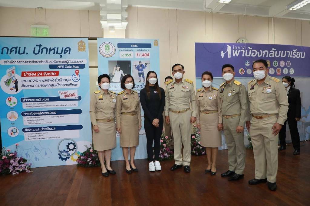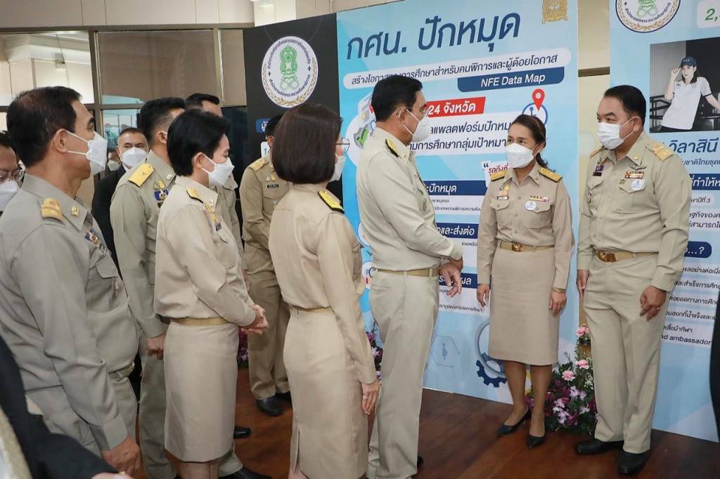 “กระทรวงศึกษาธิการ โดยรัฐมนตรีทั้งสามท่าน เล็งเห็นถึงปัญหานักเรียนที่หลุดออกจากระบบการศึกษา โดยในปี 2564 มีจำนวนนักเรียนหลุดจากระบบมากถึง 238,707 คน ในจำนวนนี้อยู่ในสังกัด สป. จำนวน 50,592 คน และเป็นข้อมูลผู้พิการที่ไม่ได้รับการศึกษาจากกระทรวงการพัฒนาสังคมและความมั่นคงของมนุษย์ (พม.) จำนวน 54,513 คน ศธ. โดย กศน. ได้ตรวจสอบข้อมูลและปักหมุดด้วยระบบดิจิทัลแพลตฟอร์ม “ปักหมุด ติดตามการศึกษากลุ่มเป้าหมายพิเศษ” จำนวน 14,187 คน เพื่อจัดการศึกษาให้เหมาะสมกับความพิการ ตลอดจนจัดการเรียนรู้ส่งเสริมอาชีพให้ครอบครัวผู้พิการ ได้มีรายได้มีความเป็นอยู่ที่ดีขึ้น พร้อมทั้งประสานภาคีเครือข่าย เข้ามาดูแลให้ความช่วยเหลือแบบยั่งยืน
