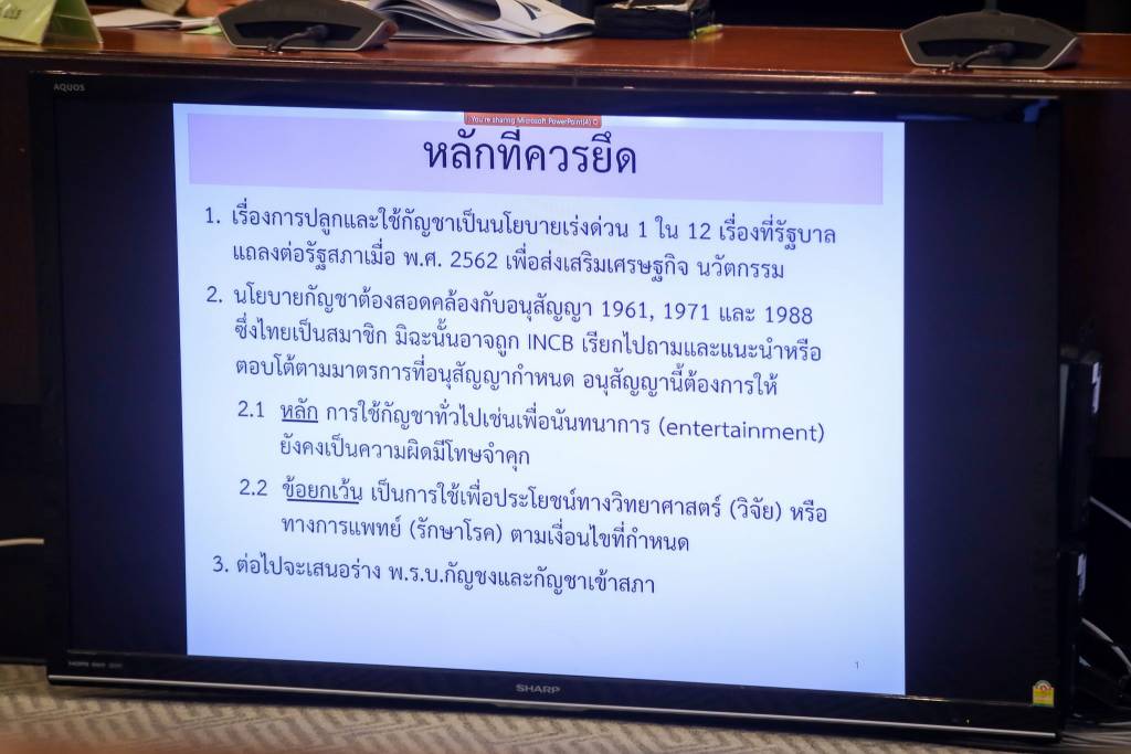 คณะกรรมการป้องกันและปราบปรามยาเสพติดหรือคณะกรรมการยาเสพติดได้มีมติเห็นชอบกับร่างฯ ที่ทางคณะกรรมการควบคุมยาเสพติดเสนอขึ้นไป ในร่างนี้ ได้ระบุชื่อยาเสพติดเป็น 3 ส่วน ส่วนที่ 1 คือพืชฝิ่น 2 เห็ดขี้ควาย และ 3 สารสกัดจากกีญชา กัญชง ที่มีค่า THC กว่า 0.2% ขั้นตอนต่อไป ทาง ป.ป.ส.จะนำผลการประชุมไปยืนยัน แล้วส่งมาให้รัฐมนตรีว่าการกระทรวงสาธารณสุขเซ็นอีกครั้ง ก่อนประกาศบังคับใช้ในราชกิจจาณุเบกษา ตามกระบวนการกฎหมาย