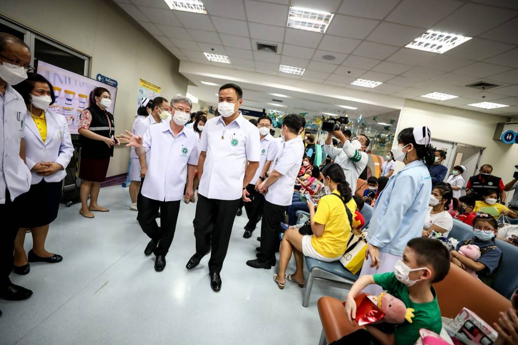 ประเทศไทยได้เริ่มการฉีดวัคซีนโควิด-19 ในเด็กอายุ 5-11 ปี ซึ่งเป็นสิ่งที่ทางกระทรวงสาธารณสุขรอมานาน เรารอให้มีวัคซีนเด็ก รอให้ทางบริษัทวัคซีนนำวัคซีนมาขึ้นทะเบียน กระทั่งทุกอย่างเรียบร้อย กรมวิทยาศาสตร์การแพทย์ ได้รับรองวัคซีน มีการทำสัญญาจัดหา โดยที่วัคซีนจะเข้ามาสัปดาห์ละประมาน 3 แสนโดส ไทยสั่งไปทั้งหมด 10 ล้านโดส ตามสัญญา จะ ใช้เวลาประมาณ 3 เดือนที่วัคซีนจะเข้ามาทั้งหมด อย่างไรก็ตาม ล่าสุด เราต้องการได้วัคซีนครบในระยะเวลาที่เร็วขึ้น เมื่อวันศุกร์ที่ผ่านมาได้หารือกับผู้บริหารไฟเซอร์ เนื่องจากมีการประชุมหอการค้าไทย-อเมริกา ได้ร้องขอในที่ประชุมไปแล้ว ทางบริษัทไฟเซอร์ได้ตอบรับยินดีที่จะดำเนินการให้ โดยน่าจะร่นระยะเวลาได้ 1 เดือน ทั้งนี้ ขอให้ทุกฝ่ายที่เกี่ยวข้องเร่งให้บริการวัคซีนให้ได้ตามเป้า นอกจากนี้ เพิ่งได้รับรายงานจากกรมควบคุมโรค ว่า วัคซีนสำหรับเด็ก 3 ขวบของซิโนแวค เพิ่งทำการยื่นจดทะเบียน หวังว่าทุกอย่างจะเรียบร้อย เมื่อทาง อย.ขึ้นทะเบียนให้แล้ว จะพิจารณาเรื่องการให้บริการทันที หวังว่าประเทศไทยจะเป็นกลุ่มประเทศแรกๆ ที่สามารถฉีดวัคซีนครอบคลุมให้กับประชากรทุกช่วงวัย
