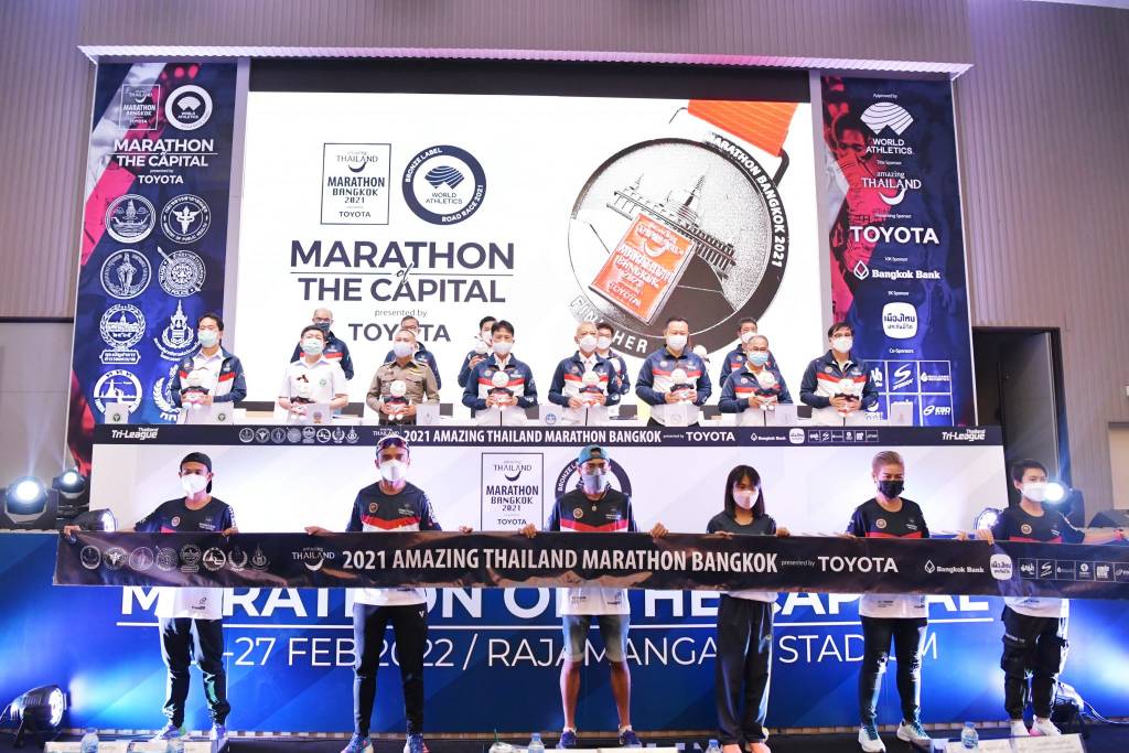 นายพิพัฒน์ รัชกิจประการ รัฐมนตรีว่าการกระทรวงการท่องเที่ยวและกีฬา กล่าวว่า “กระผมรู้สึกเป็นเกียรติอย่างยิ่ง ที่ได้มีโอกาสมาเป็นประธานในงานแถลงข่าวความพร้อมของการจัดการแข่งขันวิ่งมาราธอนส่งเสริมการท่องเที่ยวที่ได้รับการรับรองจากสมาคมกรีฑาโลก ให้เป็น 1 ในการแข่งขันมาราธอนในเมืองหลวงระดับต้นๆ ของโลก รายการ Amazing Thailand Marathon Bangkok 2021 presented by TOYOTA ถือเป็นรายการวิ่งมาราธอนที่กระทรวงการท่องเที่ยวและกีฬา เป็นผู้ริเริ่มก่อตั้งในปี 2559 โดยได้มอบหมายให้การท่องเที่ยวแห่งประเทศไทยเป็นแม่งานหลัก ซึ่งตนขอชมเชยแก่ท่านผู้ว่าการท่องเที่ยวแห่งประเทศไทย และคณะกรรมการอำนวยการจัดการแข่งขันทุกท่านที่สามารถฝ่าฟันอุปสรรคต่างๆ ของการจัดงานวิ่งในเมืองหลวงได้ด้วยดี จนทำให้รายการนี้ได้รับการยอมรับจาก World Athletics ให้เป็นรายการมาราธอนที่จัดขึ้นในเมืองหลวงระดับต้นๆ ของทวีปเอเชีย”