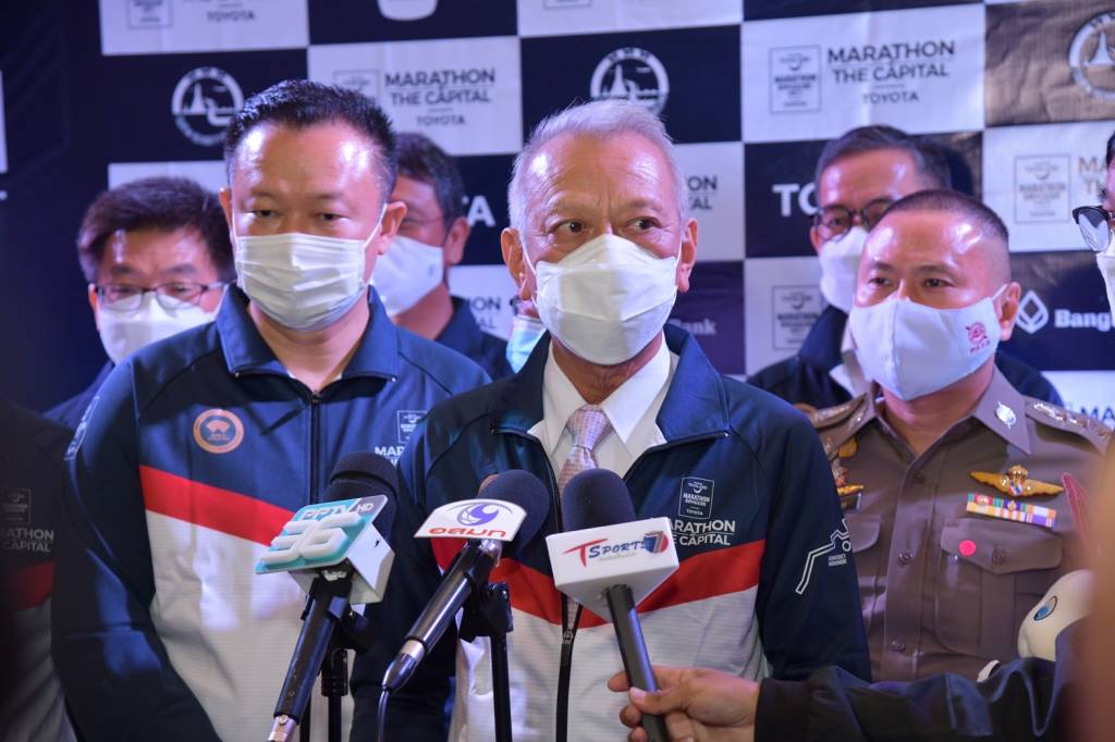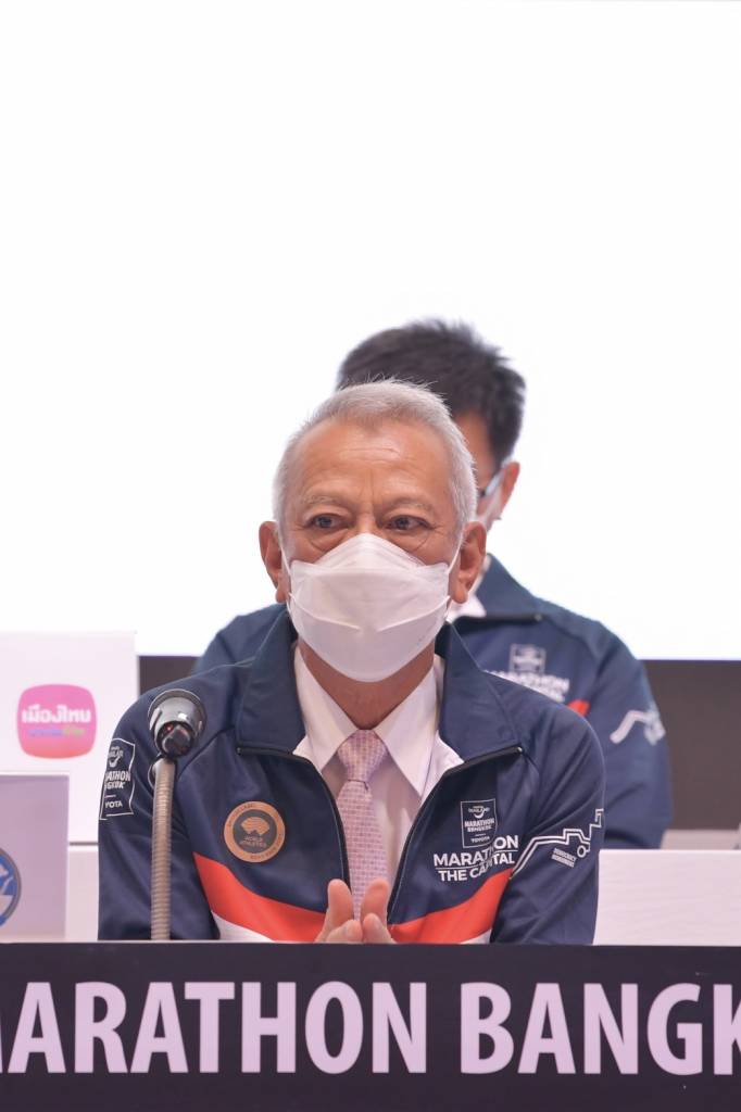 “การแถลงข่าวในวันนี้ มีวัตถุประสงค์ เพื่อสร้างความเชื่อมั่นให้กับทุกภาคส่วน ทั้งภาครัฐ และภาคเอกชน รวมถึงเหล่านักวิ่ง อาสาสมัคร เจ้าหน้าที่ตำรวจ และเจ้าหน้าที่อื่นๆ ที่มีส่วนเกี่ยวข้อง ด้วยการร่วมกันมาประกาศความพร้อมของการจัดงานในวันนี้ ตนขออวยพร ให้การดำเนินการจัดการแข่งขันวิ่งมาราธอนส่งเสริมการท่องเที่ยวระดับโลก Amazing Thailand Marathon Bangkok presented by TOYOTA ประสบความสำเร็จไปด้วยดี สามารถสร้างพลังขับเคลื่อนของกลุ่มผู้รักการออกกำลังกาย ให้หันกลับมาใส่ใจในสุขภาพของตัวเอง ซึ่งถือเป็นภูมิคุ้มกันโรคภัยไข้เจ็บได้ดีกว่าทุกสิ่งทุกอย่าง อีกทั้งยังเป็นการประกาศสู่ทั่วโลกว่าประเทศไทยสามารถที่จะจัดงานอีเว้นท์ระดับโลกได้ ภายใต้สถานการณ์การแพร่ระบาดของเชื้อโควิด-19”