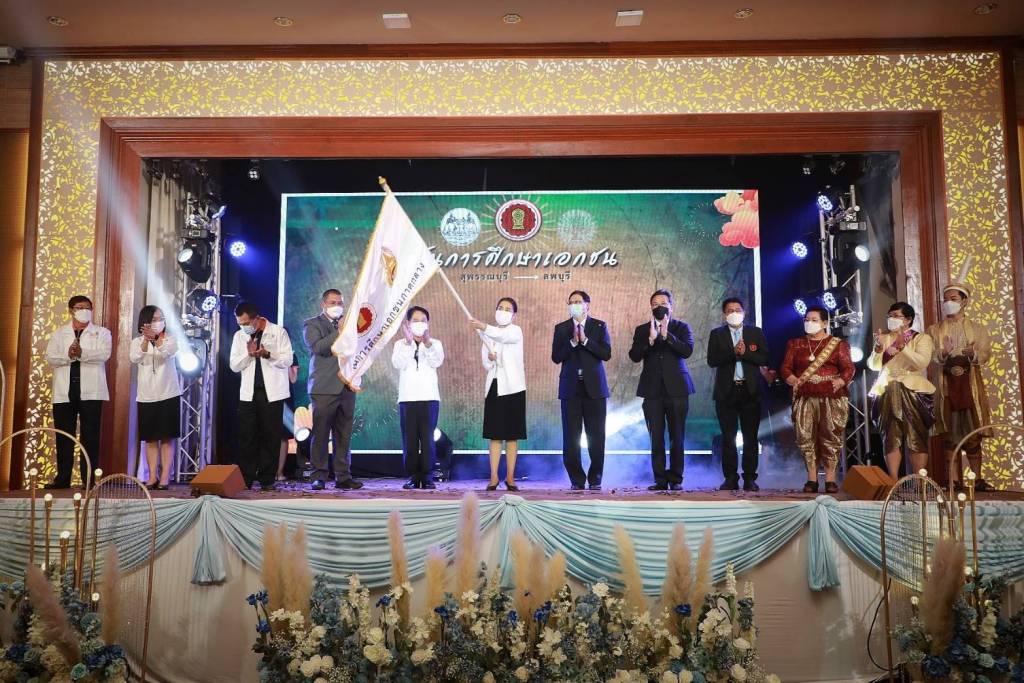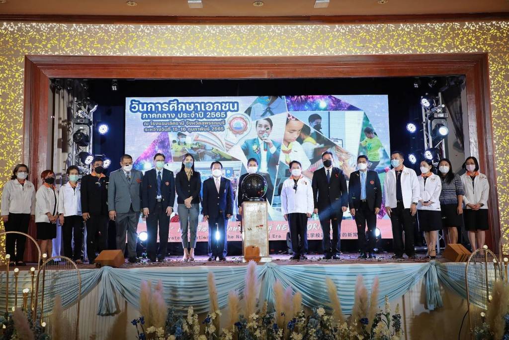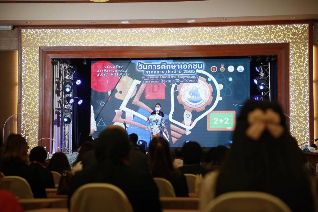 รมช.ศึกษาธิการ กล่าวตอนหนึ่งว่า ต้องขอชื่นชมคณะกรรมการจัดงานจังหวัดสุพรรณบุรี ภายใต้การนำของ นายณัฐภัทร สุวรรณประทีป ผู้ว่าราชการจังหวัดสุพรรณบุรี ที่ให้การสนับสนุนส่งเสริมในมิติทางการศึกษา โดยลงรับฟังเสียงสะท้อนและสภาพปัญหาต่าง ๆ ของสถานศึกษา เพื่อการบูรณาการการทำงานร่วมกัน ส่งผลให้การศึกษาของจังหวัดสุพรรณบุรี ก่อเกิดประโยชน์ต่อเด็กและเยาวชน ทั้งในการศึกษาในระบบและการศึกษานอกระบบของทุกสังกัด และขอบคุณ สมาคมคณะกรรมการประสานและส่งเสริมการศึกษาเอกชน เครือข่ายโรงเรียนเอกชนภาคกลาง 17 จังหวัด ที่ร่วมแรงร่วมใจกันจัดงานในครั้งนี้ เป็นการแสดงให้เห็นถึงพลังความเข้มแข็งของชาวโรงเรียนเอกชน ทั้งด้านทักษะทางวิชาการ ผู้ทำคุณประโยชน์ต่อการศึกษาเอกชน การส่งมอบธง เพื่อต่อกิจกรรมดี ๆ ให้กับตัวแทนจังหวัดลพบุรี ที่จะเป็นเจ้าภาพการจัดงานในครั้งต่อไป
