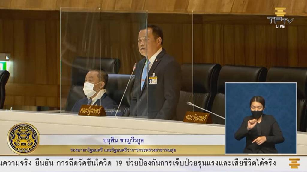 ปัจจุบันนี้ ระบบของไทย นับว่ายอดเยี่ยมมาก ไทยได้รับการจัดเป็นอันดับที่ 5 (รองจากสหรัฐ ออสเตรเลีย ฟินแลนด์ และแคนาดา) จาก 195 ประเทศทั่วโลกที่มีความเข้มแข็งด้าน “ความมั่นคงด้านสุขภาพ” จากมหาวิทยาลัย จอนส์ ฮอปกินส์ และอันดับ 1 ด้านการ ตรวจจับโรค และรายงานที่รวดเร็ว ซึ่งมันทำให้เรามีประสิทธิภาพในการางแผนรับมือกับสถานการณ์ เรื่องวัคซีน มีสมาชิกฝ่ายค้านถามว่า จะฉีดถึงเมื่อไหร่ คำตอบคือ จะฉีดจนกว่าประเทศไทย จะปลอดภัยสูงที่สุด เท่าที่จะทำได้ วัคซีนไม่ได้ป้องกันโรค 100% แต่ลดโอกาสป่วยหนัก ถึงเสียชีวิต ได้อย่างมีประสิทธิภาพ วันนี้ อัตราการสูญเสียต่อวันต่ำว่า 0.2% ก็เพราะวัคซีน ส่วนผู้ที่เสียชีวิต ก็คือไม่ได้รับวัคซีน และมีโรคประจำตัว เรากราบเรียนเสมอว่า ให้คนไทยเข้ารับวัคซีน ผู้สูงวัยยิ่งมีความจำเป็น ส่วนวัคซีนเด็ก เราไม่เคยฉีดตามอำเภอใจ เมื่อมีไฟเขียวจากคณะผู้เชี่ยวชาญ เราถึงกล้าฉีด