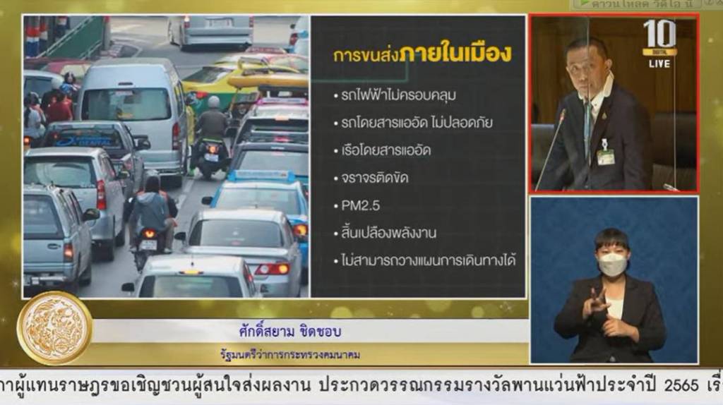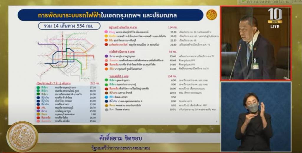 ประเด็นแรก การเดินทางของคนในเมือง “ระบบตั๋วร่วม” ที่เกี่ยวข้องกับการพัฒนาระบบไฟฟ้าในเขตกรุงเทพมหานครและปริมณฑล ที่เพื่อนสมาชิกระบุว่า มีการดำเนินการล่าช้า ขอเรียนว่า โครงการของกระทรวงคมนาคมเป็นโครงการขนาดใหญ่ซึ่งต้องใช้เวลา ไม่สามารถทำได้ทันใจ เพราะมีกฎหมาย และระเบียบที่ต้องปฏิบัติอย่างรอบคอบ นอกจากนั้นต้องตามแก้ปัญหาในอดีต เนื่องจากหน่วยงานกำกับดูแล เช่น กรมการขนส่งทางราง มีการตั้งขึ้นสำเร็จในรัฐบาลนี้ แต่การดำเนินการดังกล่าวเกิดขึ้นภายหลังจากที่มีสัญญาสัมปทานไปแล้วหลายเส้นทาง และเมื่อยังไม่มีกฎหมาย จึงจำเป็นต้องใช้วิธีการเจรจาต่อรองแต่เพียงอย่างเดียว จึงไม่สามารถนำนโยบายไปสู่การปฏิบัติได้ทันที พร้อมย้ำว่า ระบบตั๋วร่วมนี้พยายามหลีกเลี่ยงปัญหาค่าโง่ ซึ่งตนยืนยันว่าจะไม่ให้เกิดเรื่องแบบนี้ขึ้นมาอีก